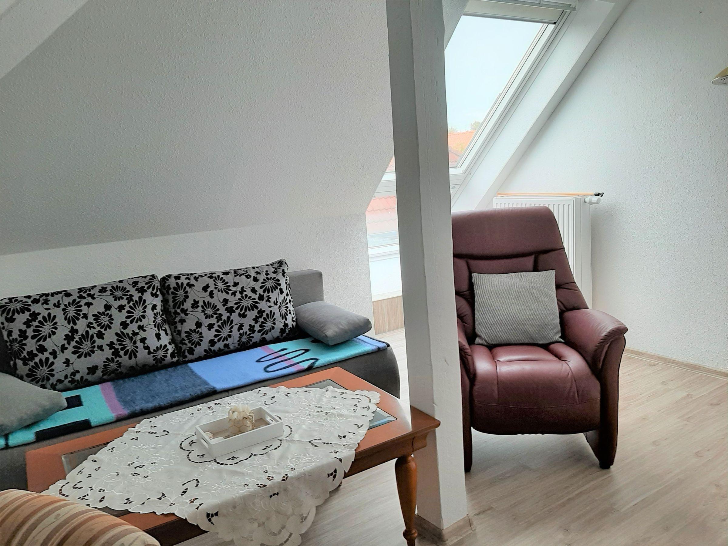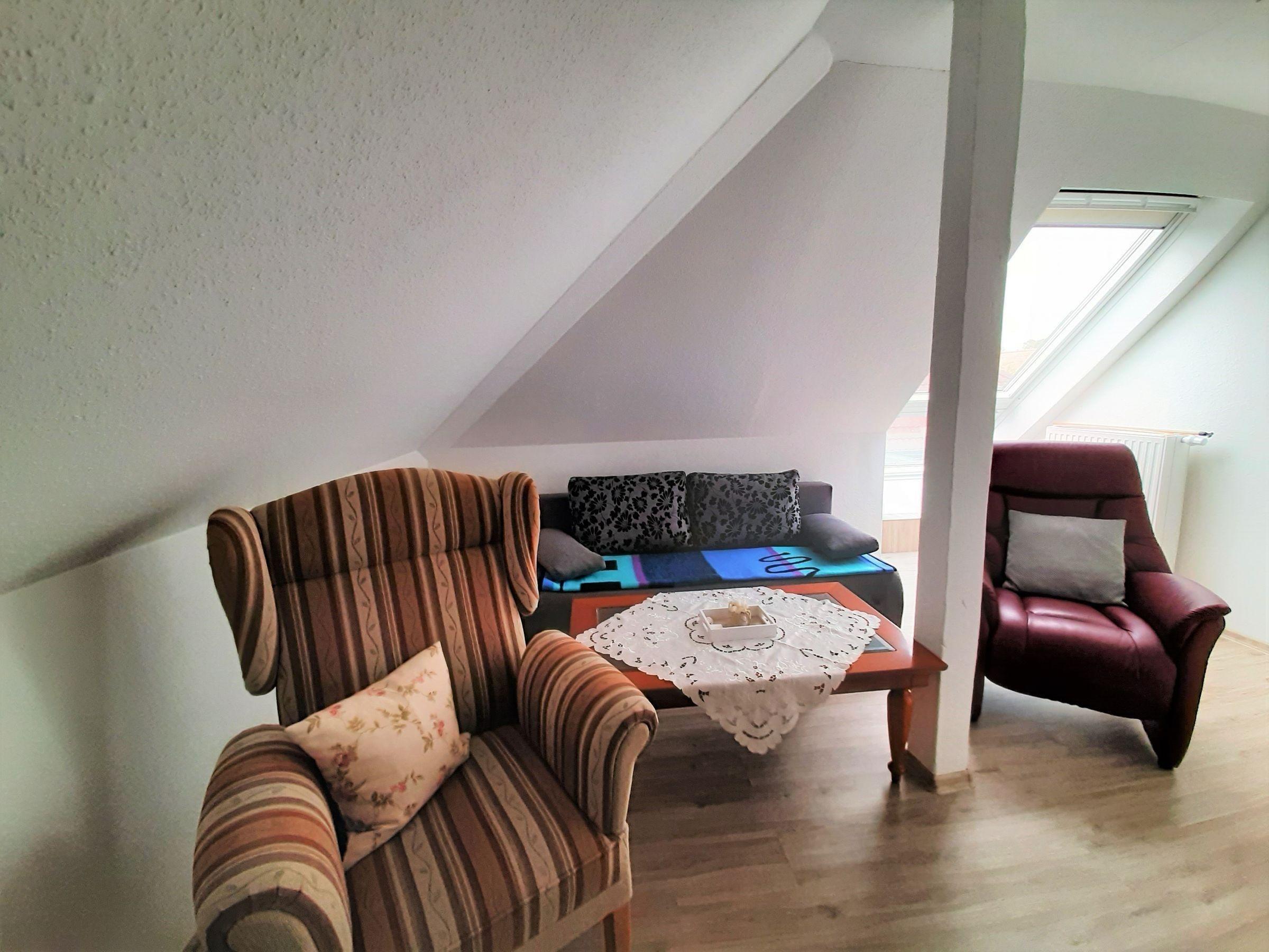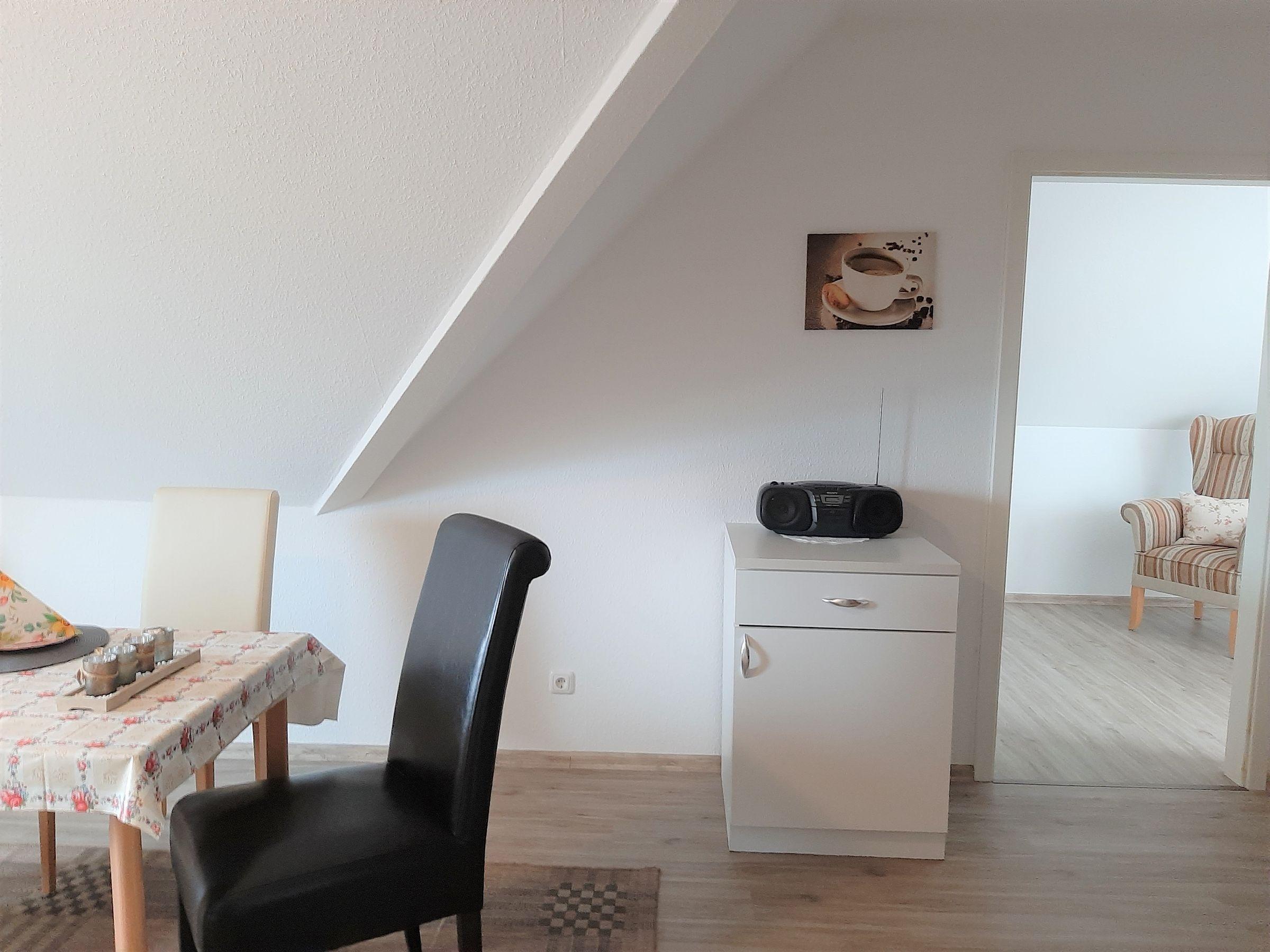 Die Ferienwohnung bietet ein komfortables Ambiente und ist ideal für Allergiker geeignet. Sie umfasst ein Schlafzimmer mit einem Doppelbett sowie ein Wohnschlafzimmer mit einem Einzelbett und einer gemütlichen Sofaecke. Die separate Küche ist vollständig ausgestattet mit einem Elektro- und Gasherd, Kühlschrank, Kaffeemaschine, Toaster und Wasserkocher. Geschirr und Besteck sind ebenfalls vorhanden, sodass eine Selbstversorgung problemlos möglich ist. Das Badezimmer mit Fenster verfügt über eine Dusche und bietet ausreichend Platz für persönliche Gegenstände in Schrank und Kommode. Zur Unterhaltung steht eine HiFi-Anlage sowie ein TV bereit. Ein Esstisch lädt zu gemeinsamen Mahlzeiten ein. Die Wohnung ist zudem mit WLAN ausgestattet, was ein reibungsloses Arbeiten oder Surfen im Internet ermöglicht. Ein Parkplatz steht direkt zur Verfügung, und die Heizung sorgt für ein angenehmes Raumklima.