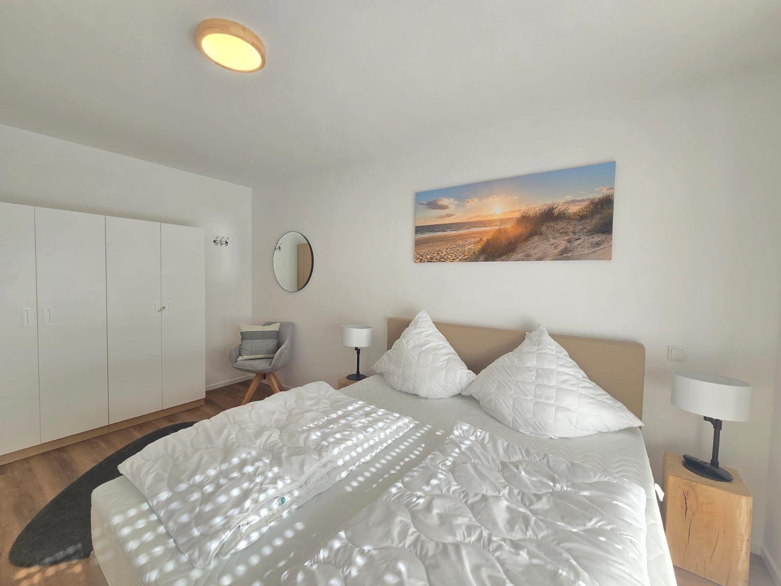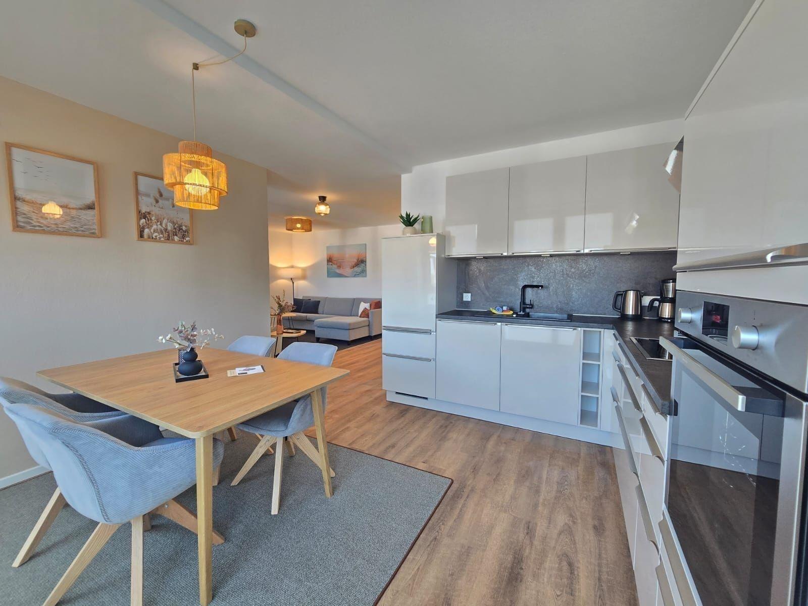 Die Ferienwohnung bietet eine komfortable und allergikerfreundliche Unterkunft, die ideal für erholsame Tage geeignet ist. Zwei Schlafzimmer mit je einem Doppelbett sorgen für erholsamen Schlaf. Die offene Küche ist komplett ausgestattet mit einem Geschirrspüler, Elektro-/Gasherd, Backofen, Kühlschrank, Kaffeemaschine, Toaster und Gefriermöglichkeit, alles vorzufinden, um sich kulinarisch verpflegen zu können.