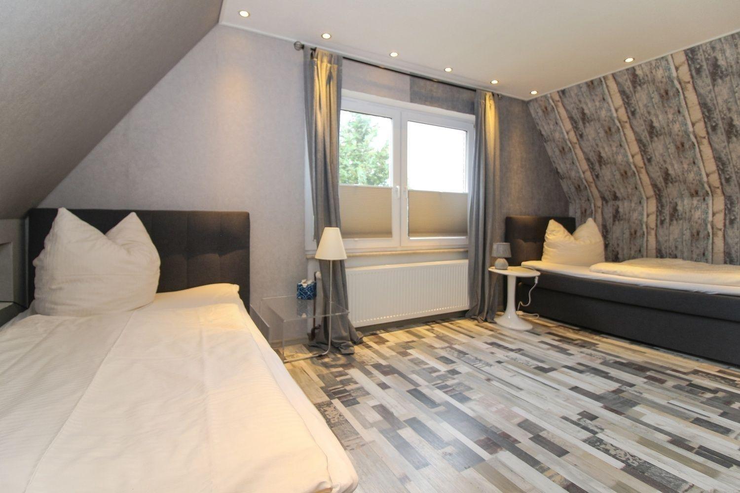 Im Obergeschoss befindet sich das zweite Schlafzimmer mit 2 Einzelbetten (Box-Springbetten) und ein eigenes Bad mit Dusche.