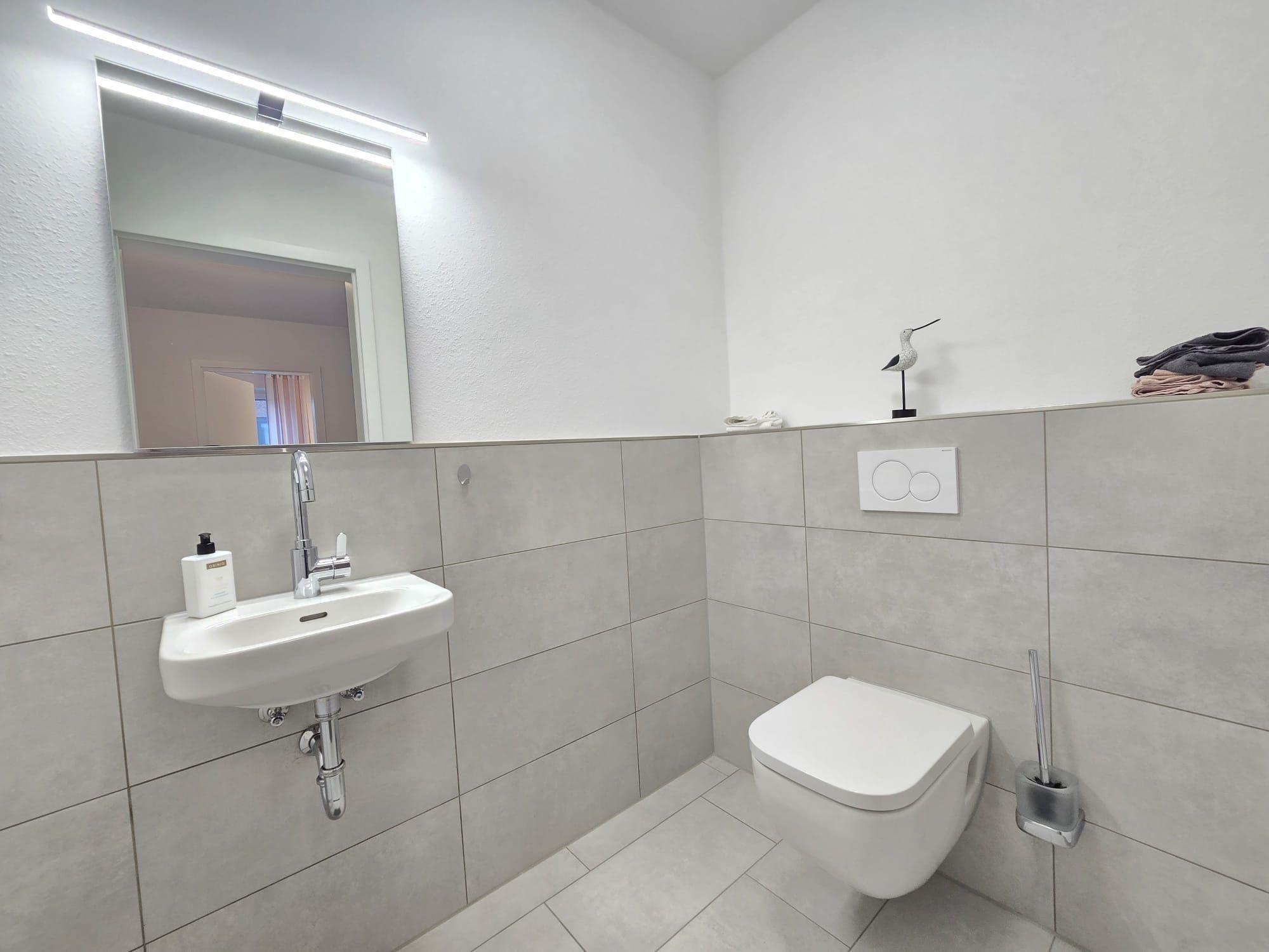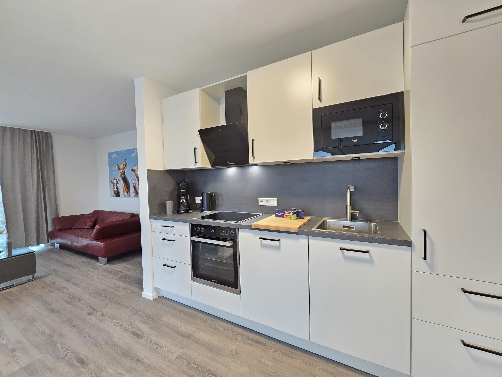Diese barrierefreie Ferienwohnung bietet eine komfortable und allergikergeeignete Unterkunft mit zwei Schlafzimmern, in denen je ein Doppelbett Platz findet. Das offene Wohnkonzept umfasst eine voll ausgestattete Küche mit Geschirrspüler, Elektro-/Gasherd, Backofen, Mikrowelle und Kühlschrank sowie eine Kaffeemaschine und einen Toaster für entspannte Frühstücksmomente. Der einladende Esstisch ermöglicht gesellige Abende. Das Badezimmer mit Fenster ist modern gestaltet und enthält ein Duschbad sowie einen Kosmetikspiegel. Ein Gäste-WC sorgt für zusätzlichen Komfort. WLAN und eine HiFi-Anlage sind ebenfalls vorhanden, ebenso wie ein TV. Für die Bequemlichkeit der Gäste stehen ein Aufzug sowie ein Parkplatz zur Verfügung. Kinderfreundliche Ausstattungsmerkmale, wie ein Kinderhochstuhl, runden das Angebot ab. Startersets für Hygieneartikel und Reinigungsmittel sind ebenfalls in der Wohnung vorhanden.