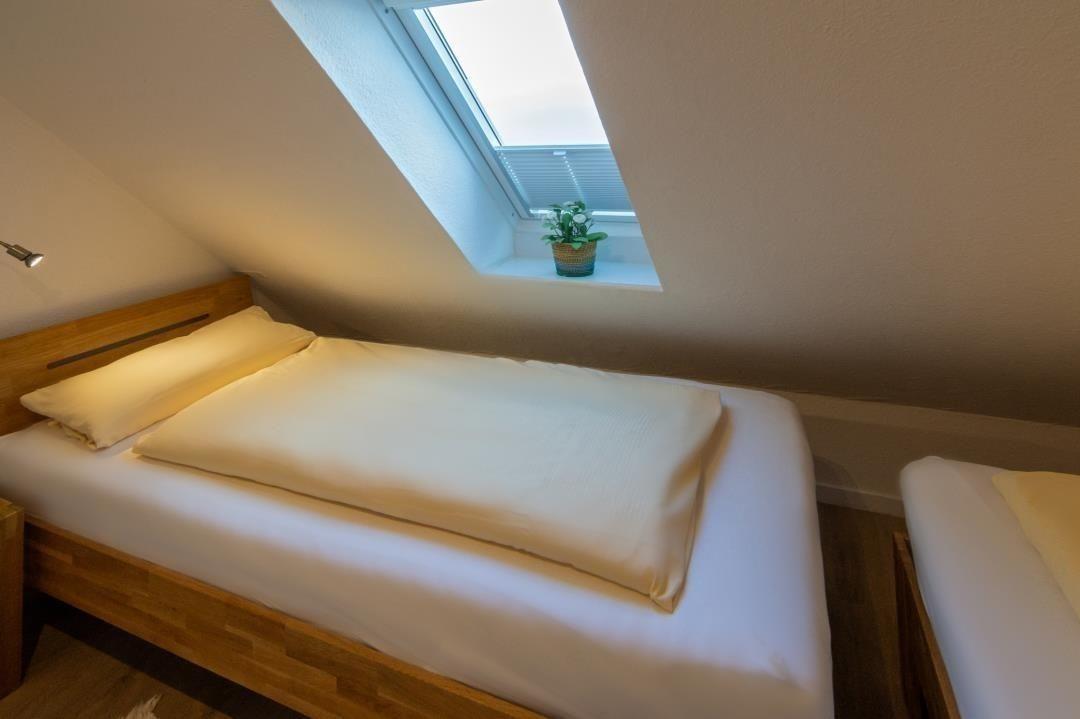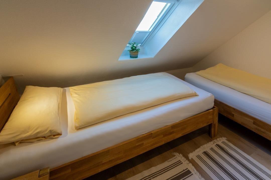 Im Wohnbereich finden Sie ein bequemes Sofa mit zwei Sesseln und einem Esstisch. Für Ihre Unterhaltung stehen Internet, WLAN, TV, Radio, ein DVD-Spieler, Bücher und Spiele zur Verfügung.Die separate Küche ist mit einem Ceran-Herd, Backofen, Gefrierfach, Kühlschrank, Espressomaschine, Mikrowelle, Kaffeemaschine, Wasserkocher, Mixer, Toaster, Eierkocher sowie Geschirr, Besteck und Gewürzen ausgestattet.Das Badezimmer verfügt über eine Dusche, WC, Haartrockner, Waschbecken, Kosmetikspiegel, Spiegel und ein Fenster. Im Abstellraum finden Sie Bügeleisen und Bügelbrett, Wäscheständer, Feuermelder, Staubsauger und einen Verbandskasten. Eine Garderobe mit Schuhablage und Ganzkörperspiegel ist auch vorhanden.Im Schlafzimmer erwarten Sie zwei Einzelbetten mit hochwertigen, bequemen Matratzen sowie zwei Nachttische und ein Kleiderschrank.Ein abschließbarer Schuppen, den sich zwei Wohnungen teilen, bietet eine Ladestation für E-Bikes und Unterstellmöglichkeiten für Fahrräder.