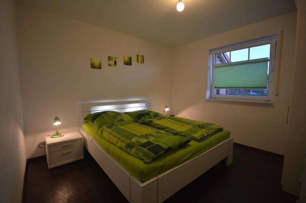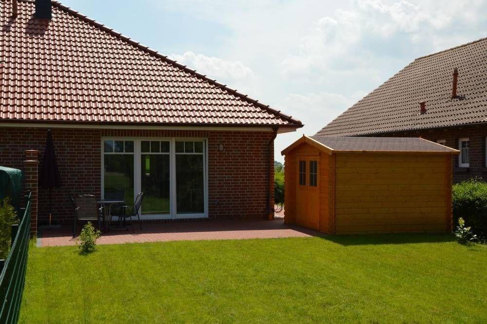 Im ersten Schlafzimmer befinden sich ein Kleiderschrank, ein Doppelbett (1,80 m x 2,00 m) sowie eine Kommode. Das zweite Schlafzimmer beinhaltet zwei Einzelbetten (0,80 m x 2,00m) und eine Kommode. In beiden Schlafräumen befinden sich außerdem Nachttische und TV-Geräte. Das helle Bad in modernen Farbtönen mit ebenerdiger Dusche mit Schwallschutz vertreibt die Morgenmüdigkeit.Das ganze Haus lässt sich mit einer Fußbodenheizung beheizen. Der Außenbereich verfügt über eine eigene Terrasse mit Gartenmöbeln und ein Außenabstellraum (Gartenhütte), in dem sie Ihre Fahrräder unterstellen können. Zum Haus gehört ein PKW-Einstellparkplatz.