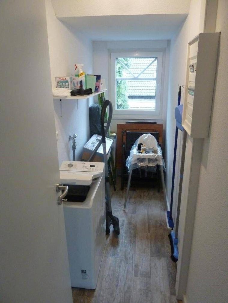 Waschmaschine, Wäscheständer, Bügelbrett und Bügeleisen finden Sie - neben vielen anderen nützlichen Utensilien wie Staubsauger und Kehrgarnitur - im Abstellraum.