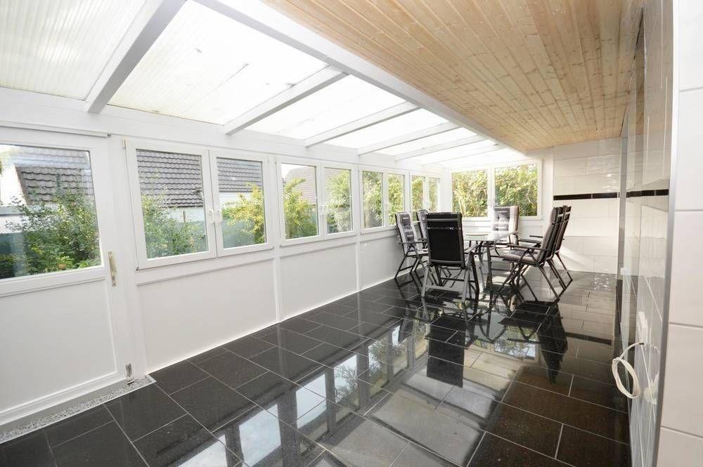 möblierter Wintergarten mit Sitzmöglichkeiten sowie einem Strandkorb (dieser wird nicht mit nach draußen genommen)
