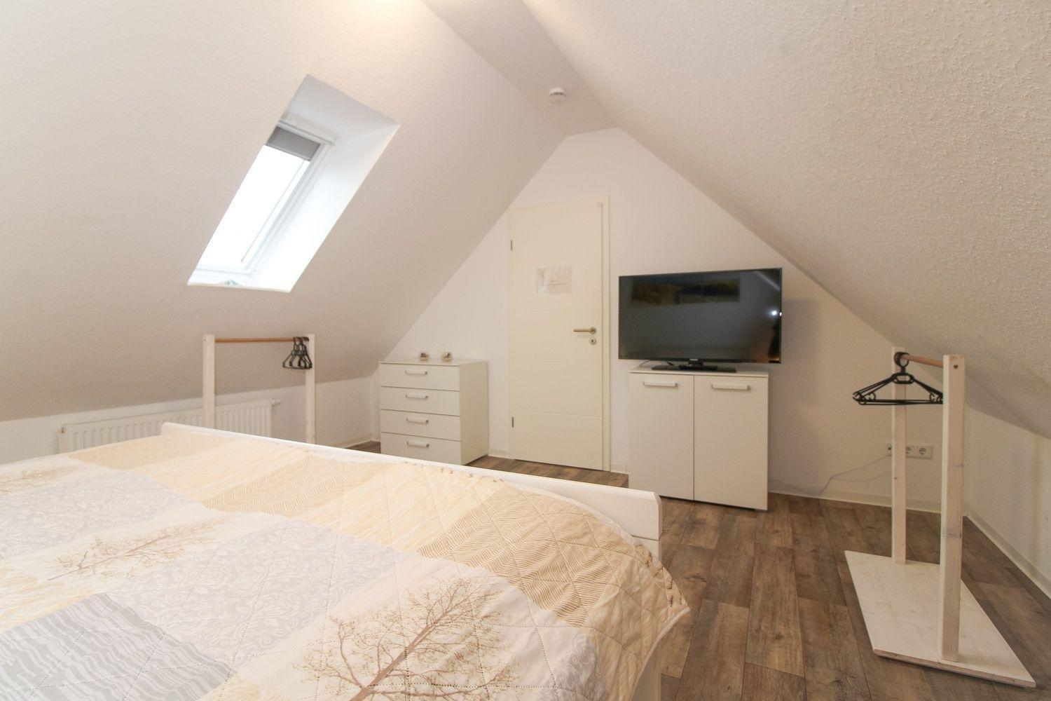 Über die Raumspartreppe im Wohnbereich erreichen Sie das zweite Schlafzimmer, welches ebenfalls mit einem Doppelbett ausgestattet ist.