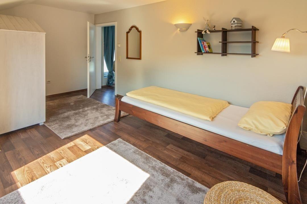 Die beiden Badezimmer sind zwar klein, aber funktional und jeweils mit Waschbecken, Dusche und WC ausgestattet. Für Ihre Erholung stehen insgesamt drei Schlafzimmer zur Verfügung: eines mit Doppelbett (180 x 200 cm), eines mit zwei Einzelbetten (je 90x 200 cm) und eines mit einem Einzelbett (100x200 cm) und eigenem Fernseher –ideal als Rückzugsort oder Kinder- bzw. Jugendzimmer. Ein Hochstuhl und ein Kinderreisebett inklusive Extra-Matratze sind ebenfalls vorhanden, sodass auch kleine Gäste bestens versorgt sind. WLAN ist selbstverständlich in der gesamten Wohnung verfügbar, und vor dem Haus finden sich auf der Straße immer Parkmöglichkeiten für eine bequeme Anreise mit dem Auto. Norden – Nordsee erleben mit Charme.