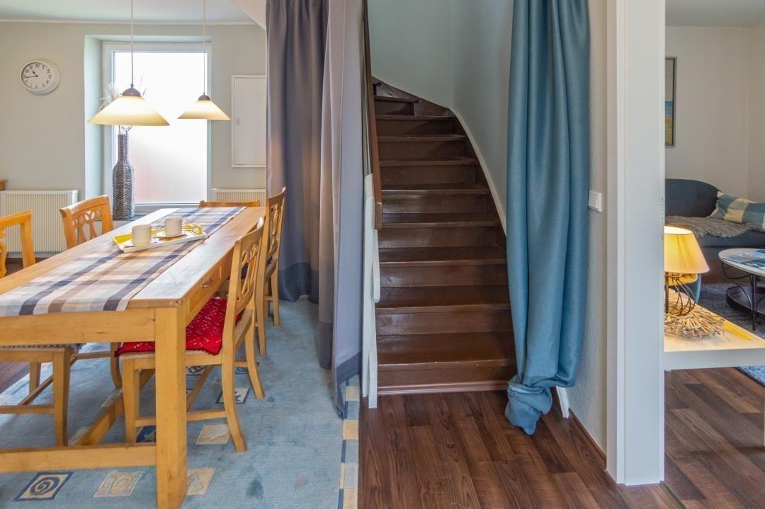 Die Wohnung erstreckt sich über zwei Etagen und ist ideal für Familien, Paare oder kleine Gruppen, die Wert auf eine durchdachte, liebevoll zusammengestellte Ausstattung und eine entspannte, angenehme Atmosphäre legen.