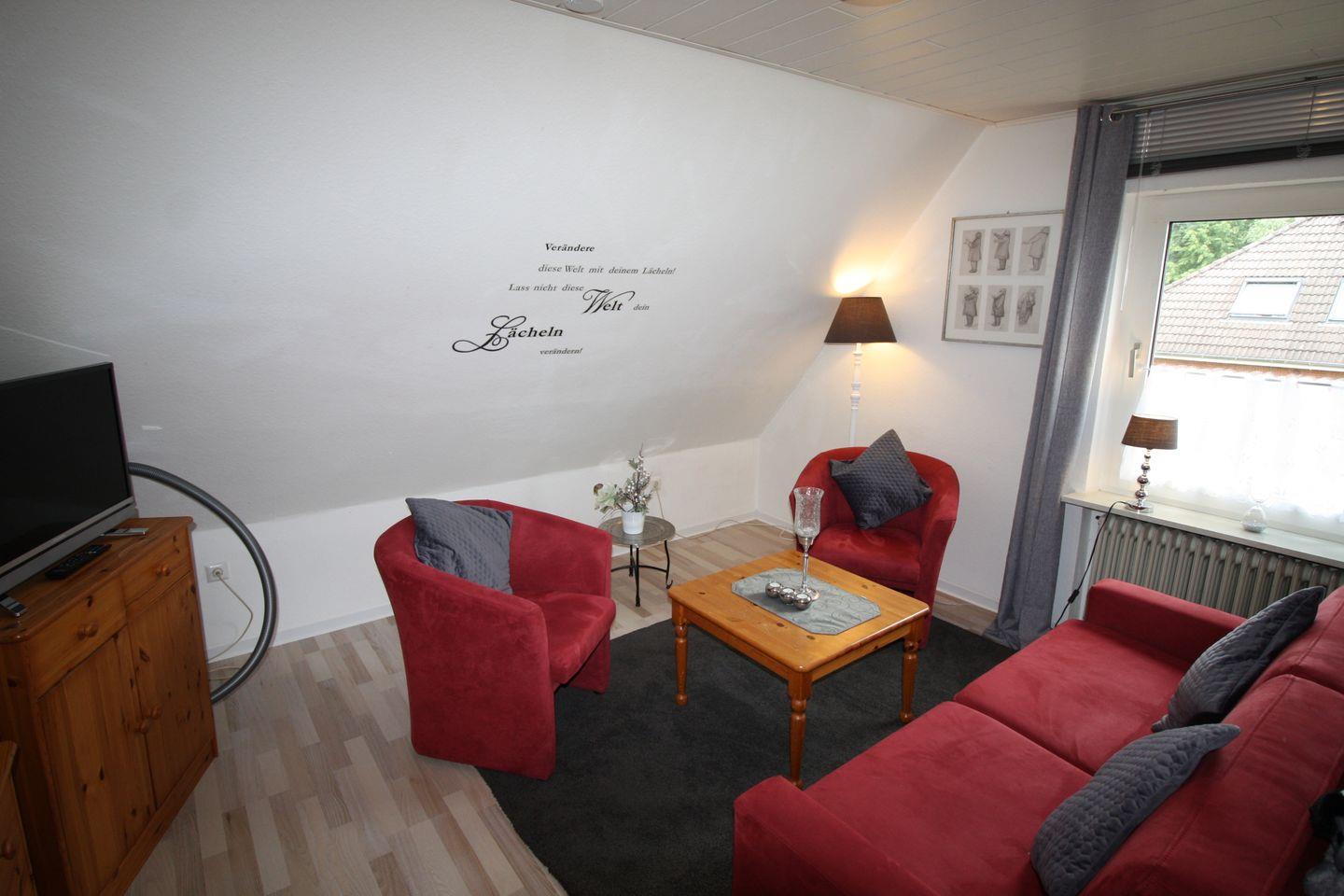 Ihnen steht ein Wohnzimmer mit TV, Küche mit Essbereich und allen notwendigen Utensilien ausgestattet. Ebenfalls steht Ihnen Bad mit Badewanne und Fenster bereit. Das Schlafzimmer verfügt über ein Bett (140 x 200 cm) und einen Kleiderschrank. Der zweite Schlafplatz befindet sich im Wohnzimmer, Schlafcouch