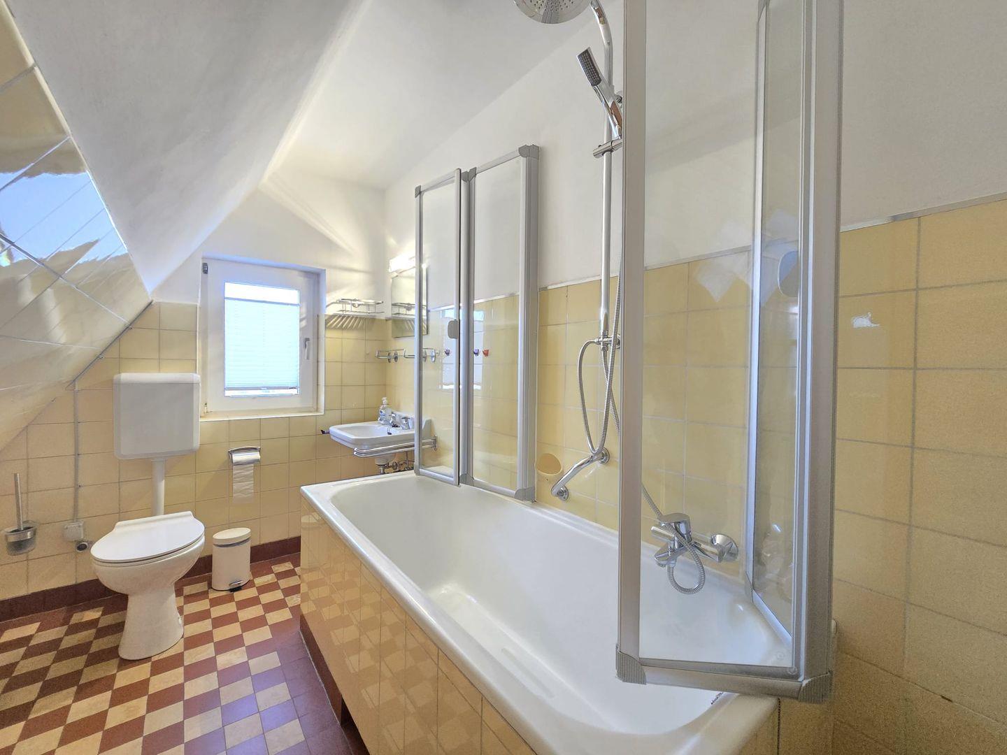 Das helle Esszimmer mit großem Esstisch lädt zu gemeinsamen Mahlzeiten und geselligen Abenden ein.