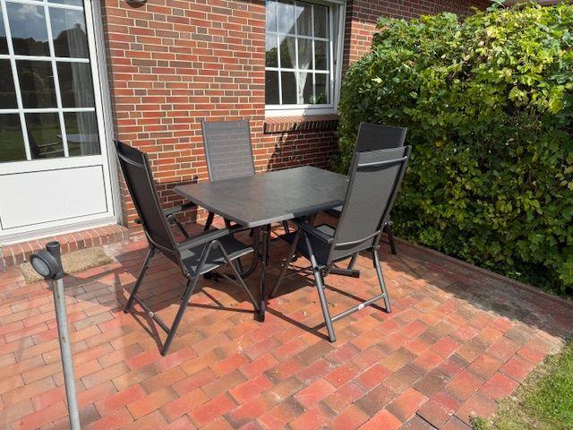 In der modernen Wohnung stehen Ihnen unter anderem eine Kaffeemaschine (Filter) sowie eine Mikrowelle zur Verfügung. Die Nichtraucherwohnung verfügt außerdem über eine Küchenzeile mit Essbereich in einem separaten Zimmer. Auf der Terrasse und im Garten können Sie die Nordseeluft genießen.