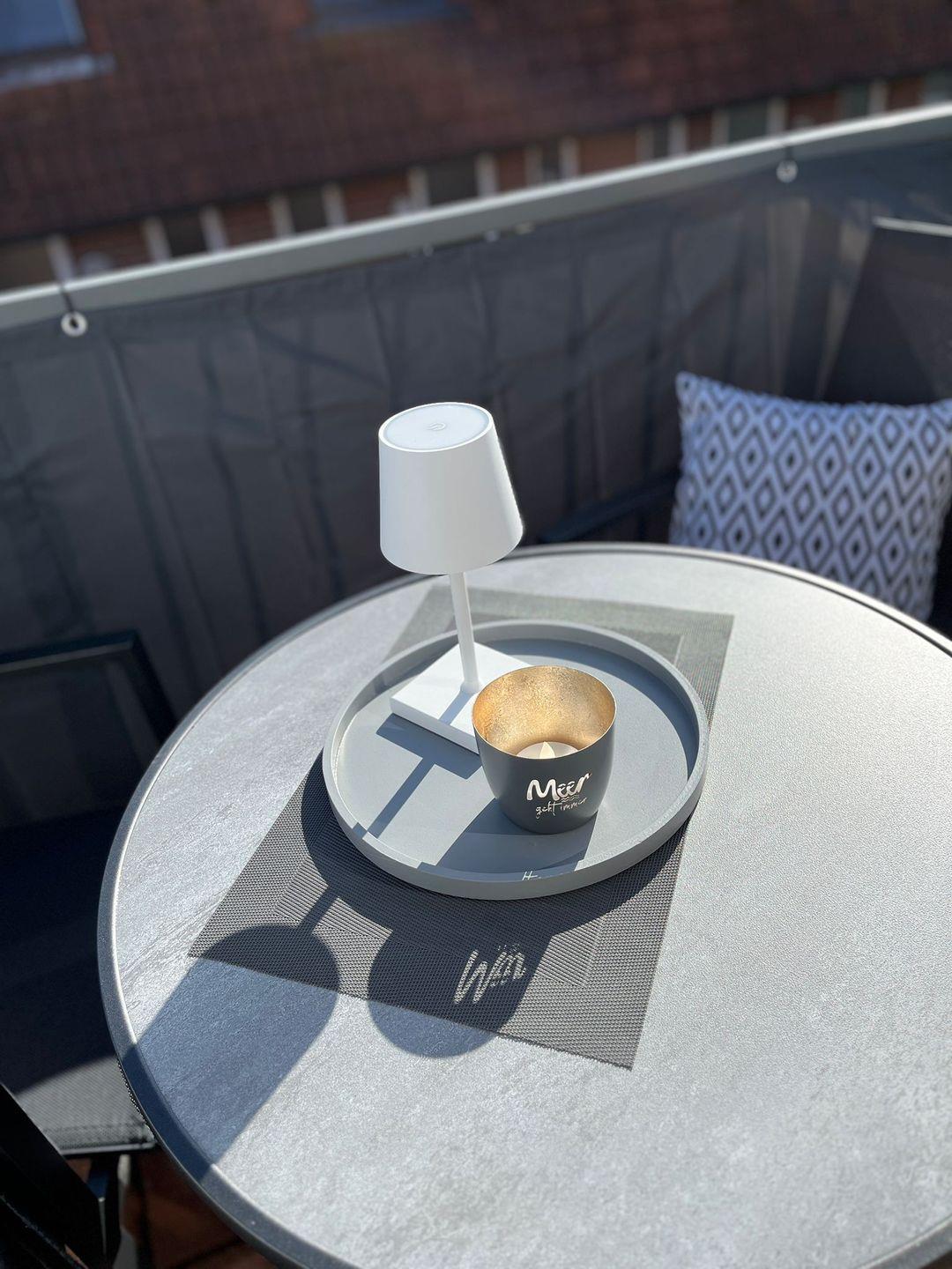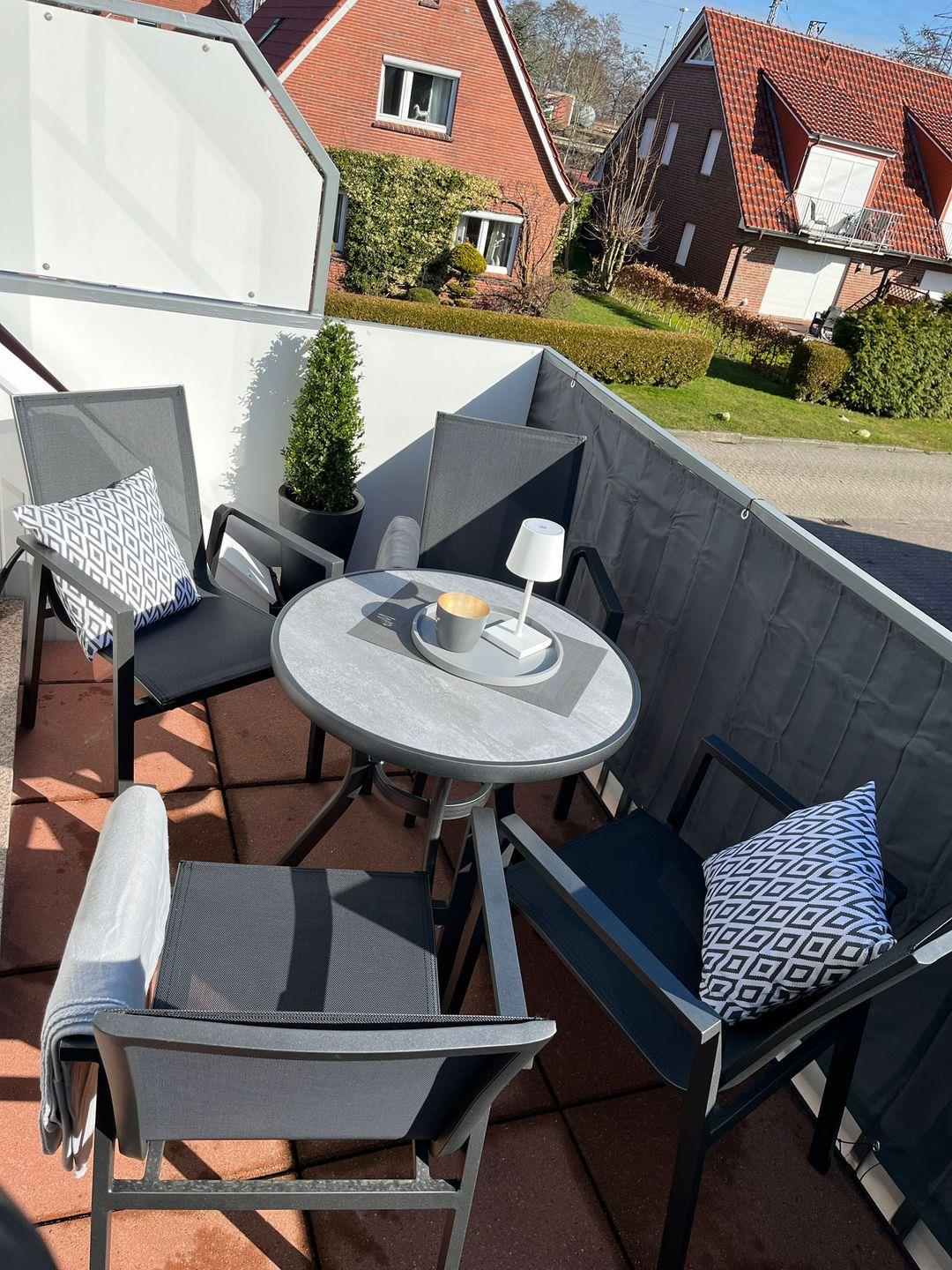 Der schön große Balkon lädt zum Verweilen ein: morgens ein gemütliches Frühstück an der frischen Luft, abends ein Glas Wein und entspannte Stunden – genau so fühlt sich Nordseeurlaub an.