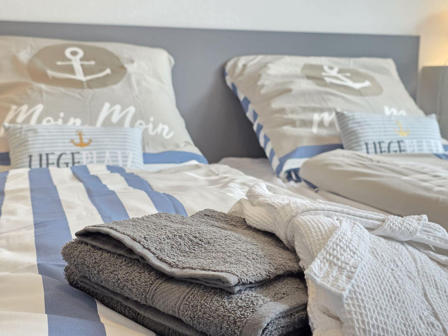 Ein besonderes Highlight ist die große Terrasse, die zu den schönsten Plätzen der Wohnung gehört. Ob beim Frühstück an der frischen Nordseeluft oder beim gemütlichen Abend – hier können Sie Ihren Urlaub in vollen Zügen genießen. Die Terrasse bietet ausreichend Platz für leichte Yoga- oder Stretchingübungen; eine Yoga-/Fitnessmatte ist bereits in der Wohnung vorhanden.