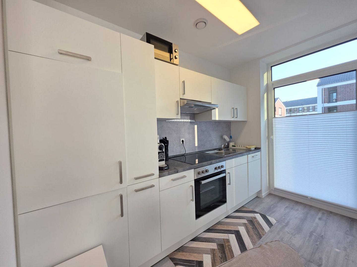 Der helle und freundliche Wohnbereich lädt zum Entspannen ein. Eine große Sofalandschaft bietet viel Platz zum Relaxen und kann bei Bedarf zu einer zusätzlichen Schlafmöglichkeit umgebaut werden. Ein Esstisch verbindet den Wohnbereich mit der offenen Küche, die modern ausgestattet und auf dem neuesten Stand ist. Hier finden Sie alles, was Sie für einen komfortablen Aufenthalt benötigen.