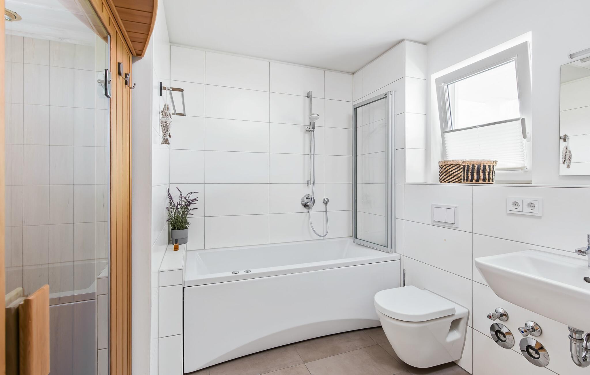 Badeværelse (nr. 1) - WC. Varmt og koldt vand. Bruser og badekar