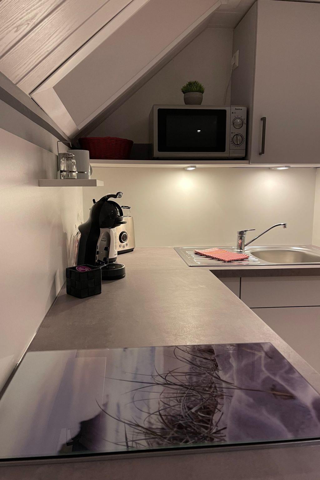 Inside the flat, guests will find a harmonious combination of comfort and functionality. Amenities include a capsule coffee machine, ideal for cosy mornings and an electric car charging station, which eco-conscious travellers are sure to appreciate. Equipped with a thoughtfully designed living area that is supported by renewable energy and solar power, the flat provides an eco-friendly living experience. A kettle completes the extensive equipment list, so guests can feel right at home.