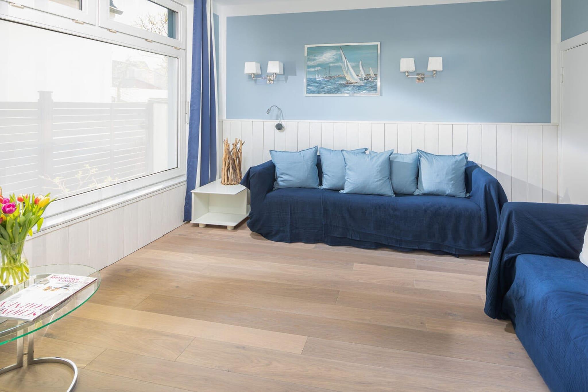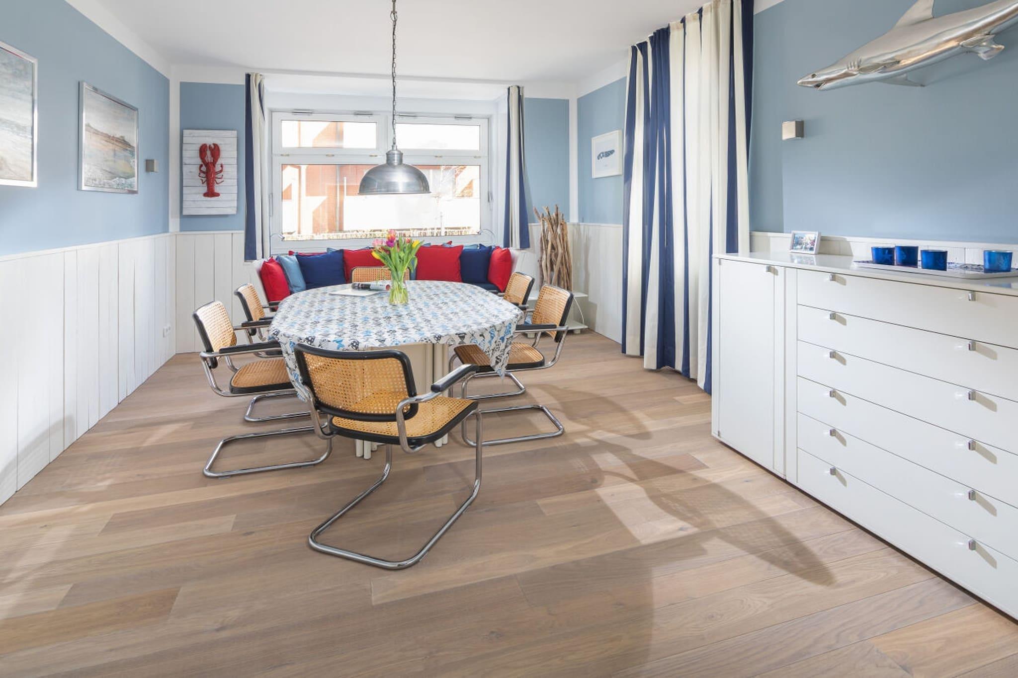 Das liebevoll eingerichtete Friesenhaus verfügt insgesamt über 13 Betten in 6 Schlafzimmern. Es eignet sich hervorragend für einen Urlaub mit zwei befreundeten Familien oder Mehrgenerationenurlaube. Im Erdgeschoss gibt es lediglich 2 Stufen, ansonsten ist das Erdgeschoss barrierefrei, so dass perfekt Oma und Opa mitreisen können. Für Familien mit kleinen Kindern stehen zwei fantasievolle Kinderzimmer, zwei TripTrap Stühle, Spielzeug und Kindergeschirr zur Verfügung. Das Haus liegt lediglich 4 Gehminuten vom Nordstrand und 8 Gehminuten von der Innenstadt entfernt. Das Haus verfügt über einen eigenen kostenlosen Parkplatz am Haus. Im Wintergarten steht eine lange Tafel, so dass einem gemütlichen Familienessen nichts im Wege steht.