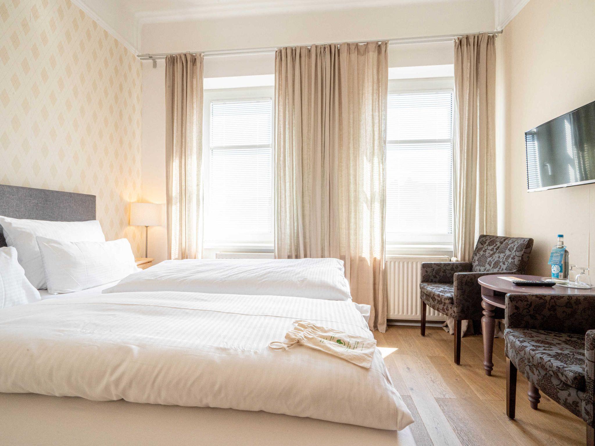 In unserem über 100 Jahre alten denkmalgeschützten Gebäude aus der Gründerzeit, finden Sie ein kleines Hotel mit 10 geräumigen Zimmern.
