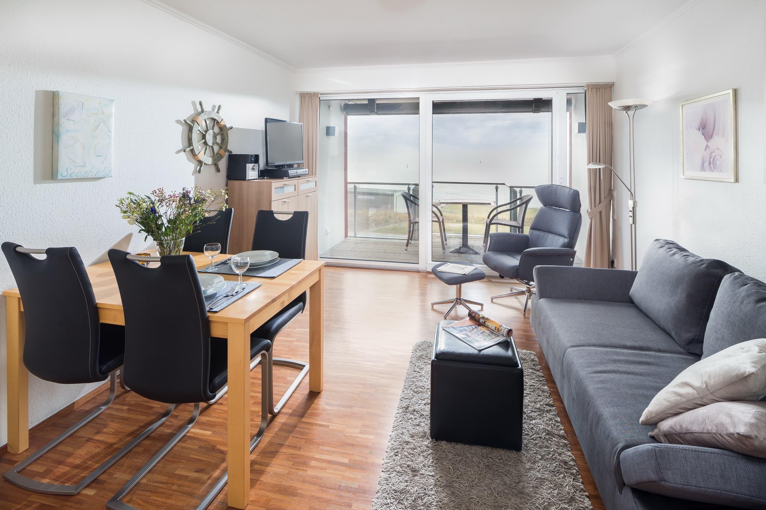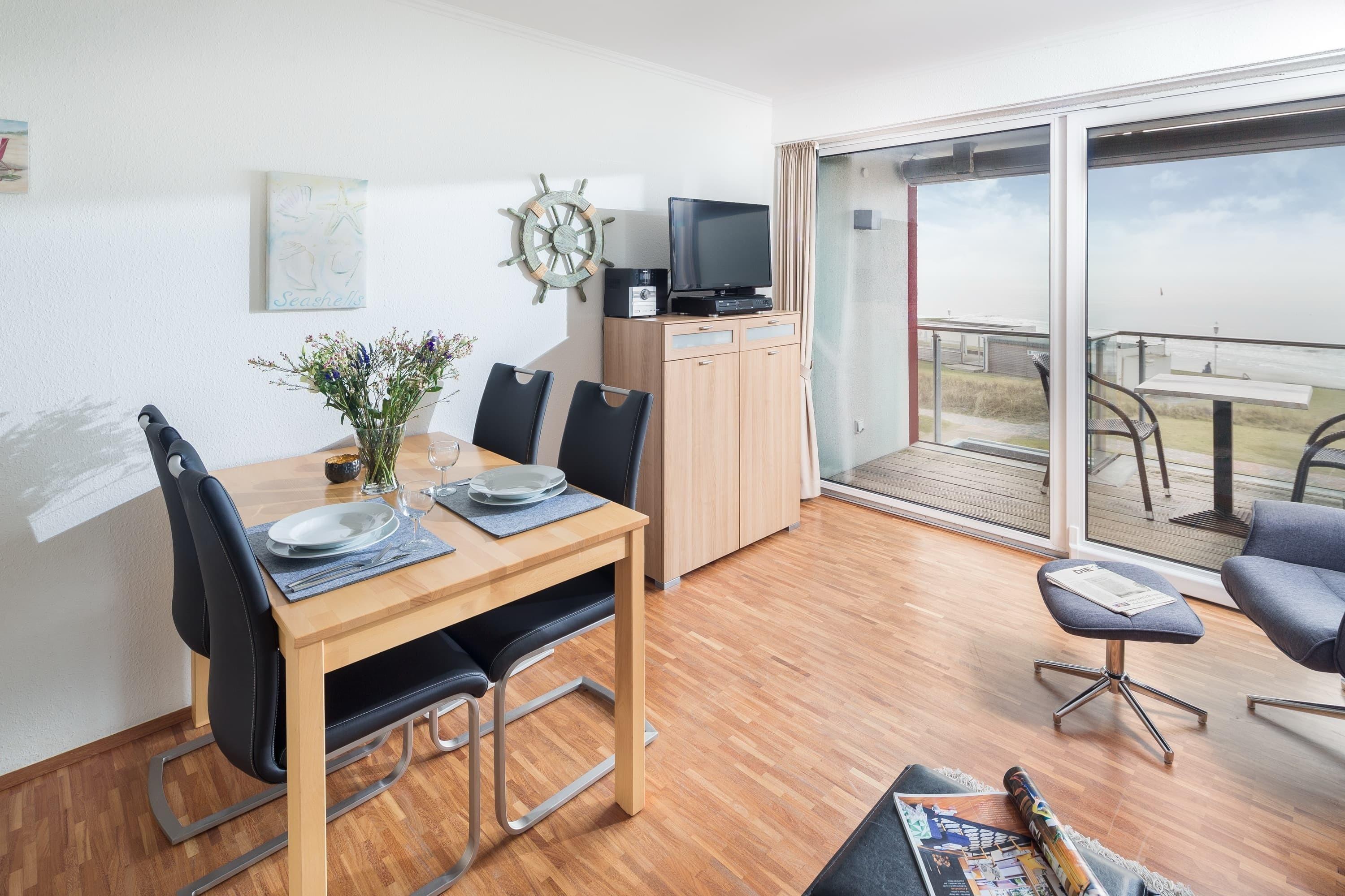 Morgens können Sie beim Bäcker um die Ecke in der Strandstrasse frische Brötchen kaufen, abends genießen Sie von Ihrem geräumigen Balkon den Sonnenuntergang . Die hochwertig ausgestattete Wohnung für 2 Personen besticht neben ihrer zentrale Lage durch ihren traumhaften Ausblick. Hier können Sie das ganze Jahr über direkten Meerblick geniessen – im Sommer vom Balkon aus, im Winter von drinnen – entspannt im Relaxsessel oder Sofa oder ebenso beim Frühstück vom Esstisch aus.