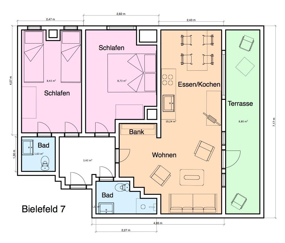 Die Ferienwohnung "Bielefeld 7" auf Norderney liegt im umgebauten historischen Gebäude des ehemaligen Kinderheims der Stadt Bielefeld. Die Wohnung liegt am Rande des Kurparks und Waldes. Durch diese Lage sind Restaurants, Cafés und auch weitere Einkaufsmöglichkeiten fußläufig erreichbar. Die 3-Raum-Wohnung befindet sich im Erdgeschoss des Gebäudes und ist barrierefrei zugänglich.