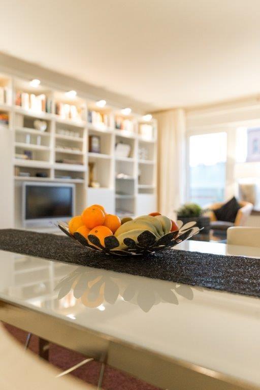 Die Wohnung entspricht einem gehobenen Standard. Sie bietet einen Wohnbereich mit Essecke, einem Essbereich und einer voll eingerichteten, offenen Küche. Zudem gibt es im Wohnbereich einen DVD-Player, Internetzugang und einen Flachbildschirm-TV (Kabel) mit SKY-Bundesliga Programm. Das Schlafzimmer verfügt über ein Doppelbett. Das Badezimmer ist mit einer Dusche und einem Handtuchtrockner ausgestattet. Der Südbalkon ist mit einer Markise ausgestattet. Hunde sind in dieser Ferienwohnung nicht gestattet.