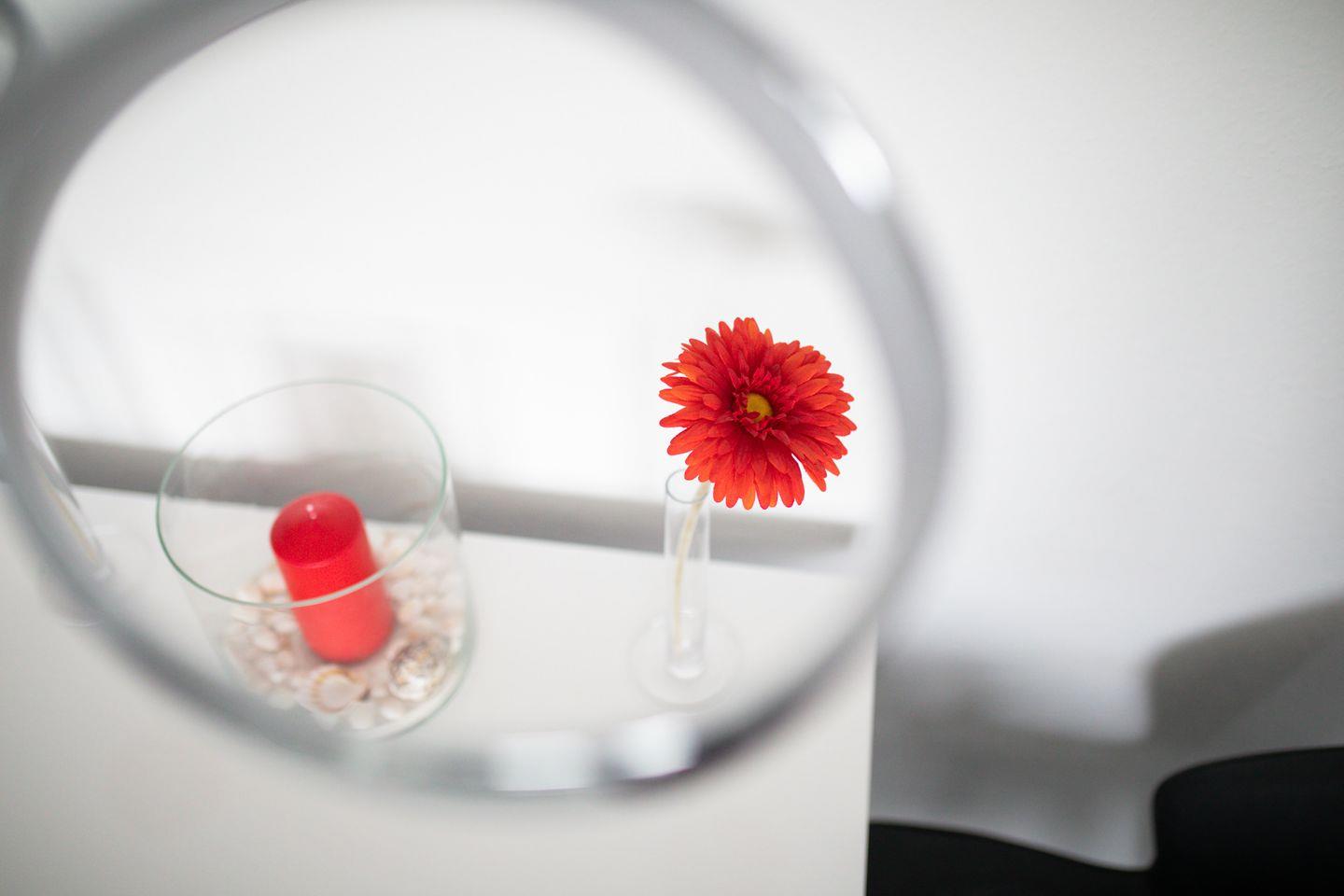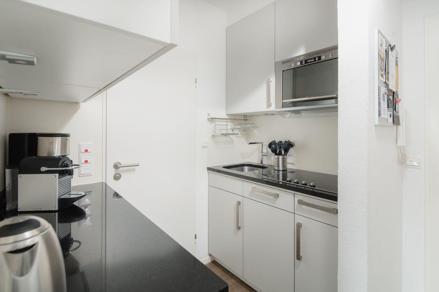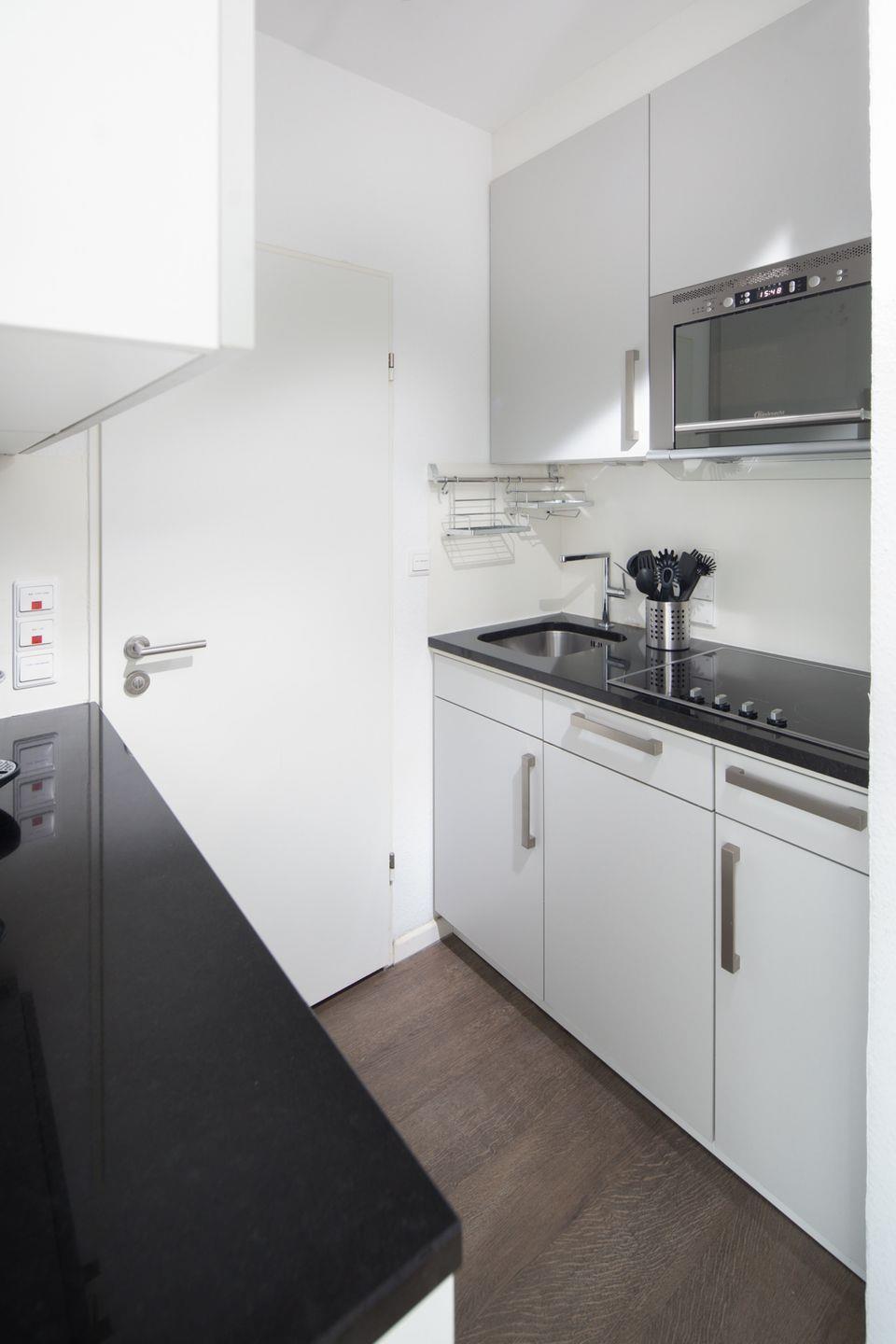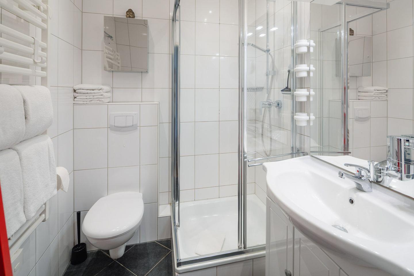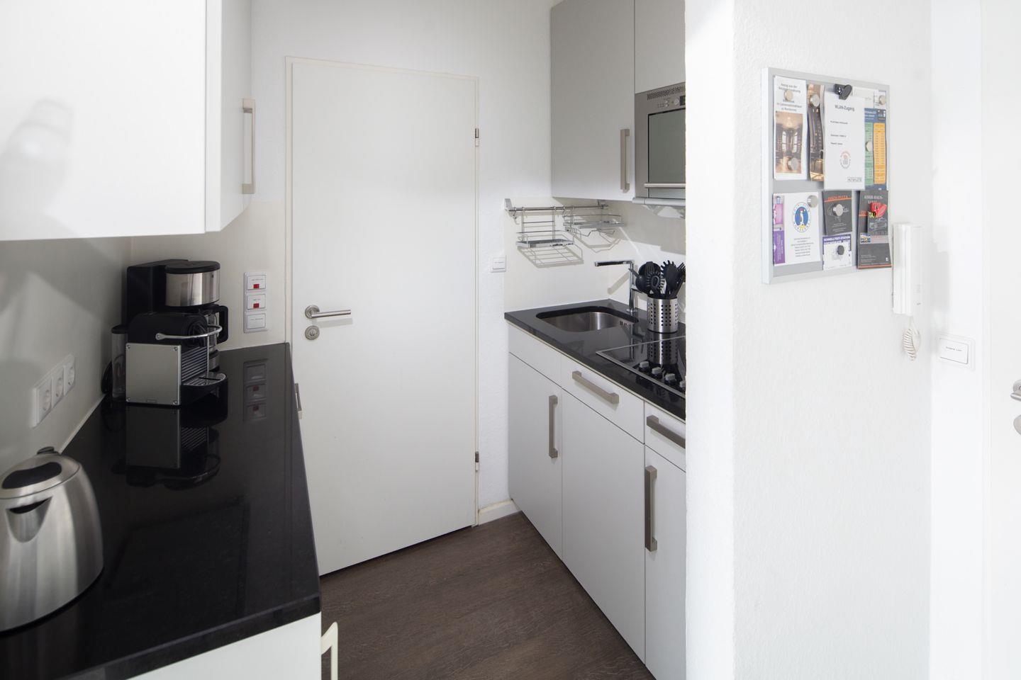 Die Wohnung verfügt über zwei Schlafzimmer. Eines ist mit einem Doppelbett und das andere mit zwei Einzelbetten ausgestattet. Das moderne Badezimmer ist mit einer Dusche und einem Handtuchtrockner eingerichtet. Zudem verfügt die Wohnung über ein Wohnzimmer mit einer Sitzgruppe. Die kleine Küche ist im Flurbereich integriert und mit einer Spülmaschine, einer Mikrowelle und einem Cerankochfeld ausgestattet. Ein Highlight ist der umlaufende Balkon. Hunde sind in dieser Ferienwohnung nicht erlaubt.