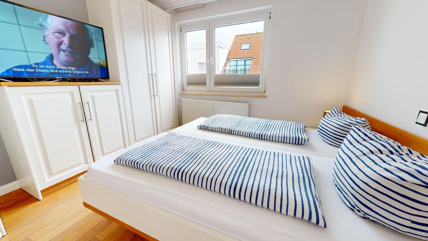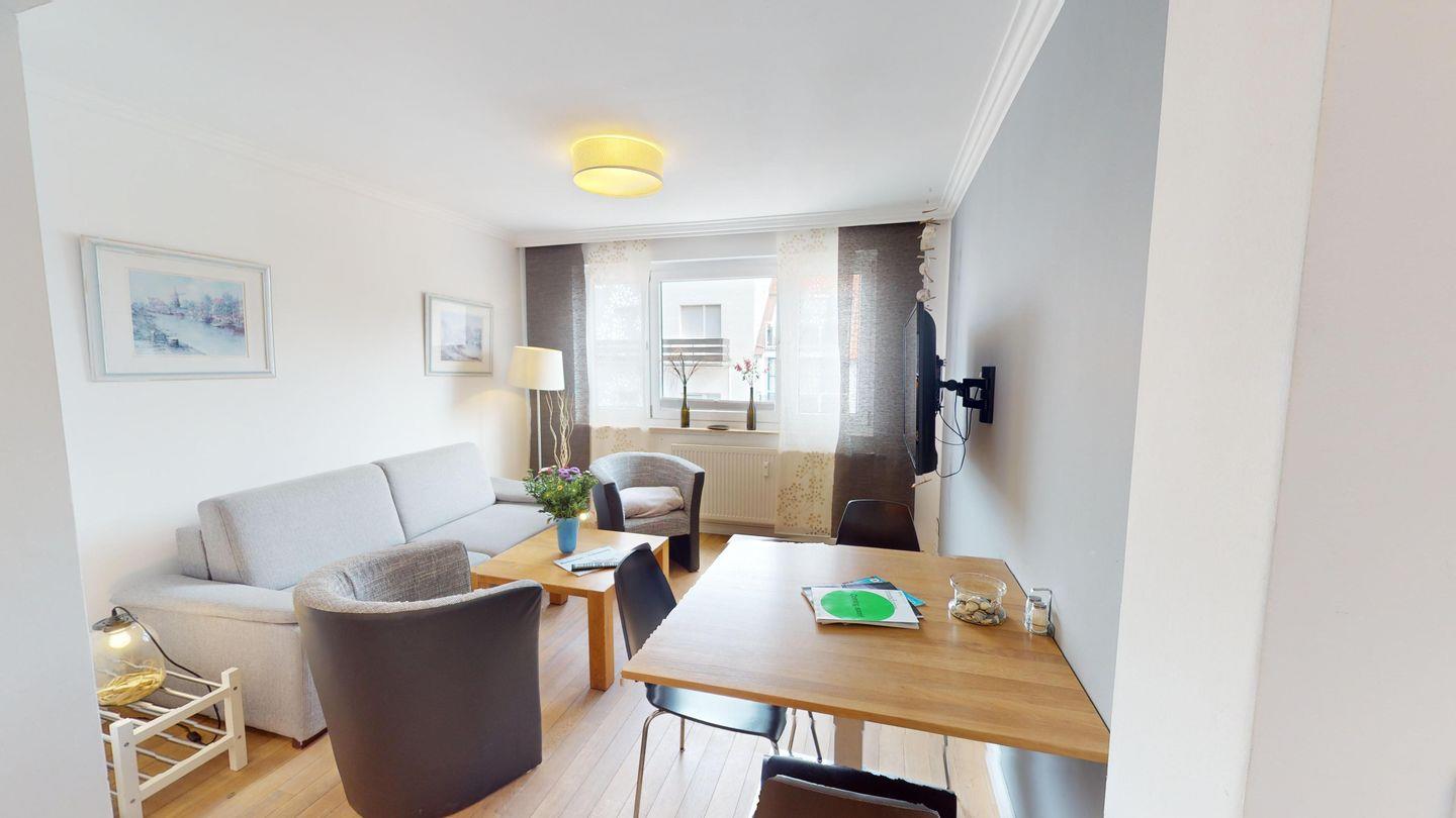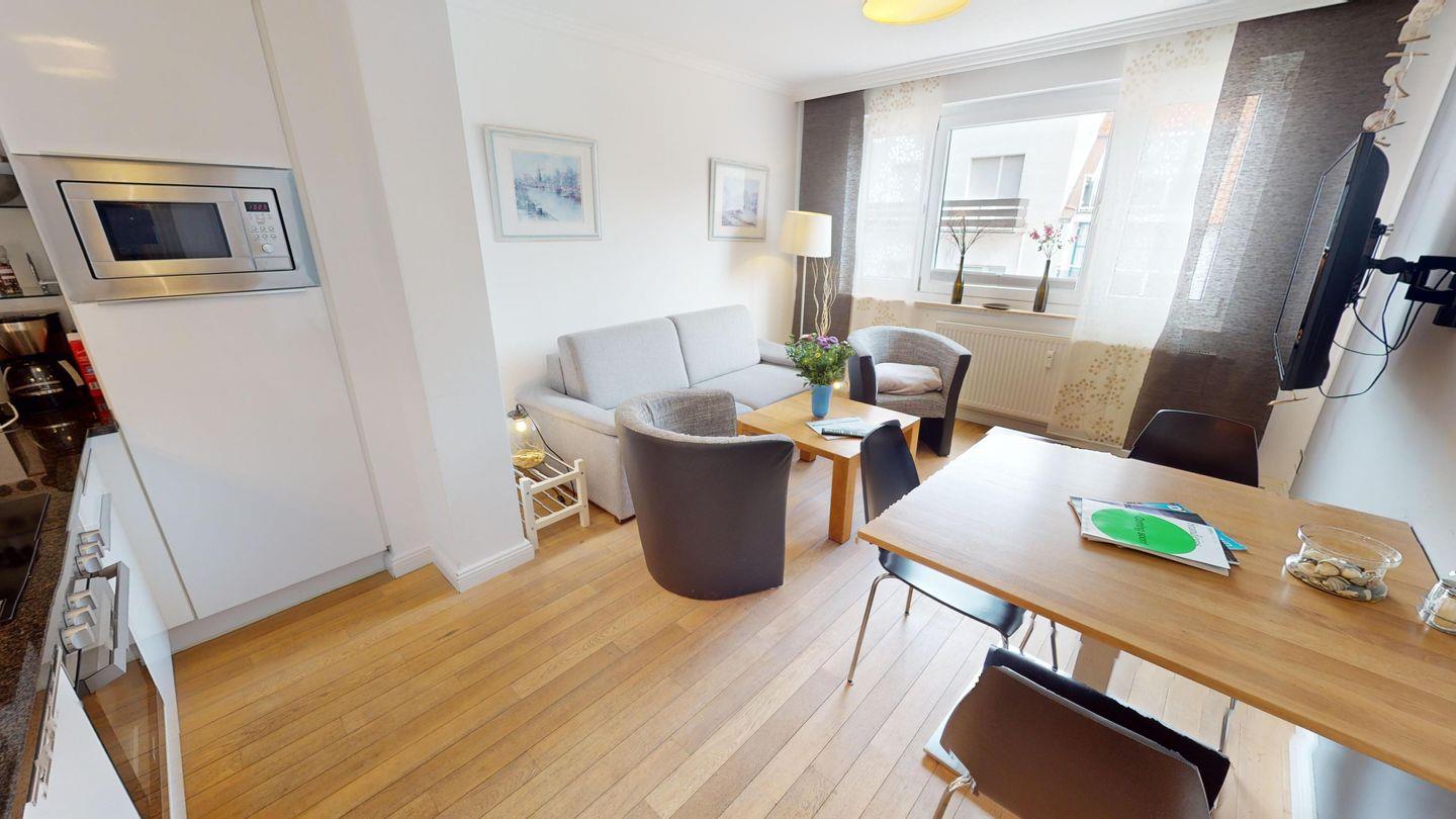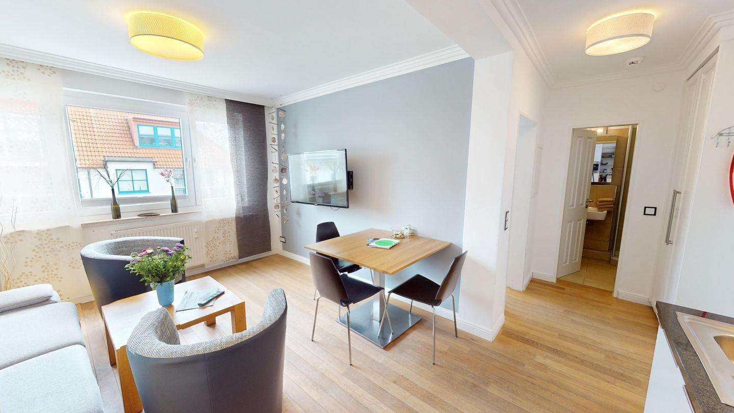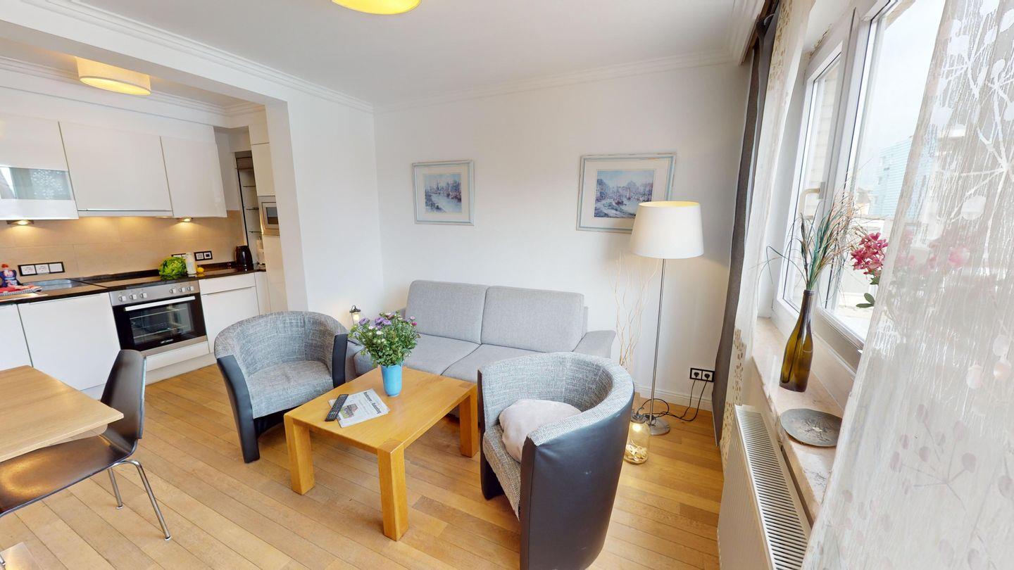 Die Wohnung wurde mit Liebe zum Detail eingerichtet. Hochwertige Massivholzböden und maßgefertigte Einbauschränke verleihen der Wohnung einen eigenen Charme. In der Küche und dem Badezimmer wurde Naturstein verbaut. Das Schlafzimmer ist mit einem Doppelbett und einem Fernseher ausgestattet. Im Wohnzimmer befindet sich ein Schlafsofa, welches eine zusätzliche Schlafmöglichkeit bietet. Hunde sind in dieser Ferienwohnung nicht erlaubt.