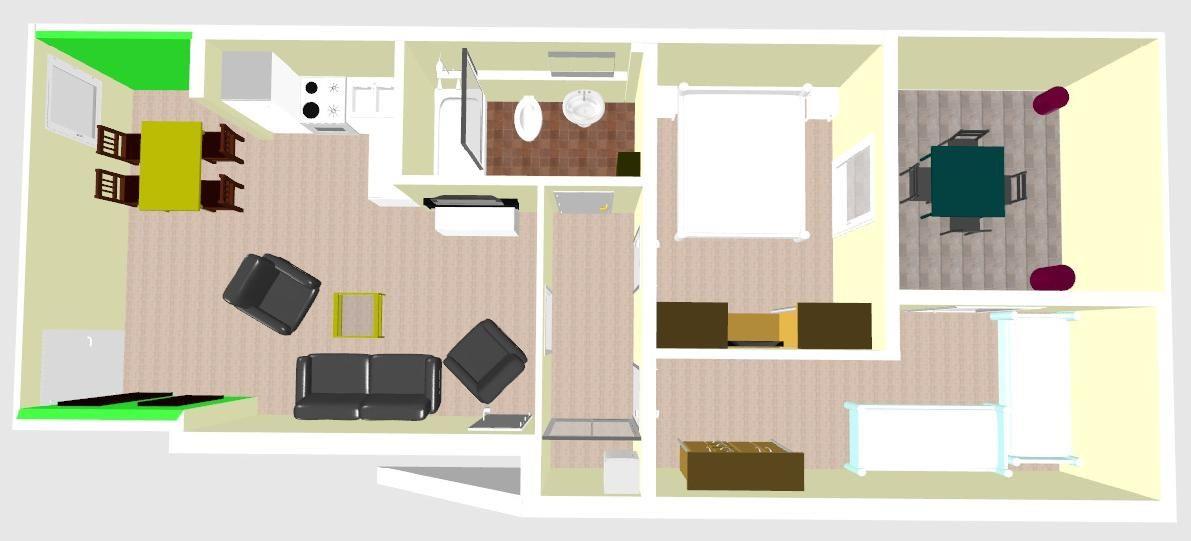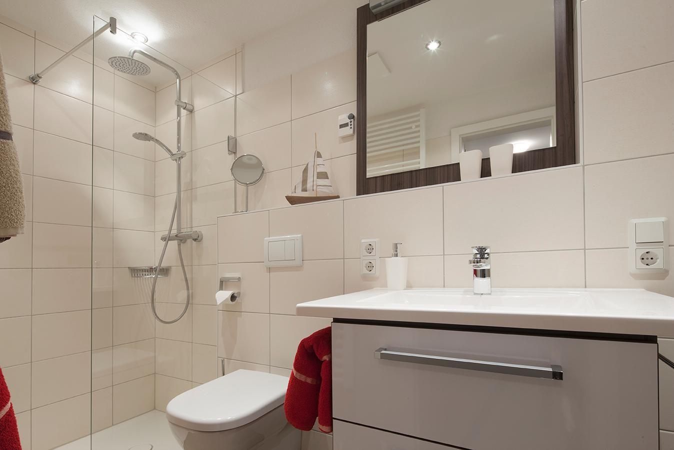 Die Wohnung verfügt über zwei Schlafzimmer - eines mit einem Doppelbett und eines mit zwei Einzelbetten. Das helle Wohnzimmer integriert die gut ausgestattete Küchenzeile und einen Essbereich. Das Badezimmer ist mit einer Dusche und einem Handtuchtrockner ausgestattet. Hunde sind in dieser Wohnung nicht erlaubt.