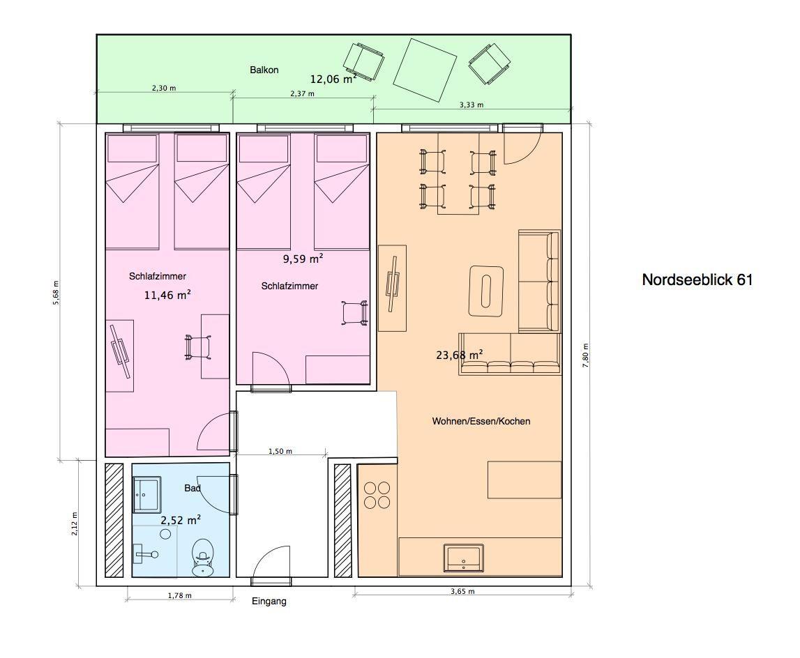 Die Ferienwohnung "Nordseeblick 61" befindet sich im achten Stock des Hauses "Nordseeblick". Das Haus liegt in der Kaiserstraße und ist mit einem Fahrstuhl ausgestattet. Die Wohnung bietet Platz für bis zu 4 Personen. Der Strand ist nur ca. 85m entfernt. Auch der Inselkern mit seinen zahlreichen Restaurants, Cafés oder anderen Einkaufsmöglichkeiten ist in wenigen Gehminuten erreichbar.