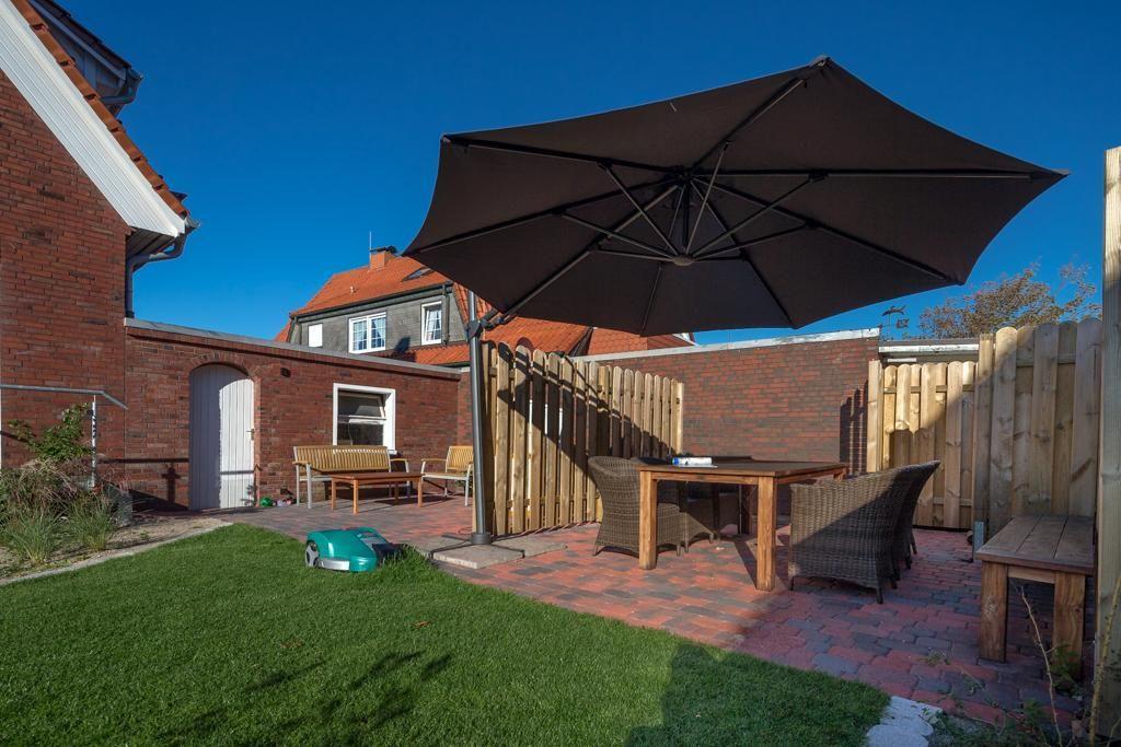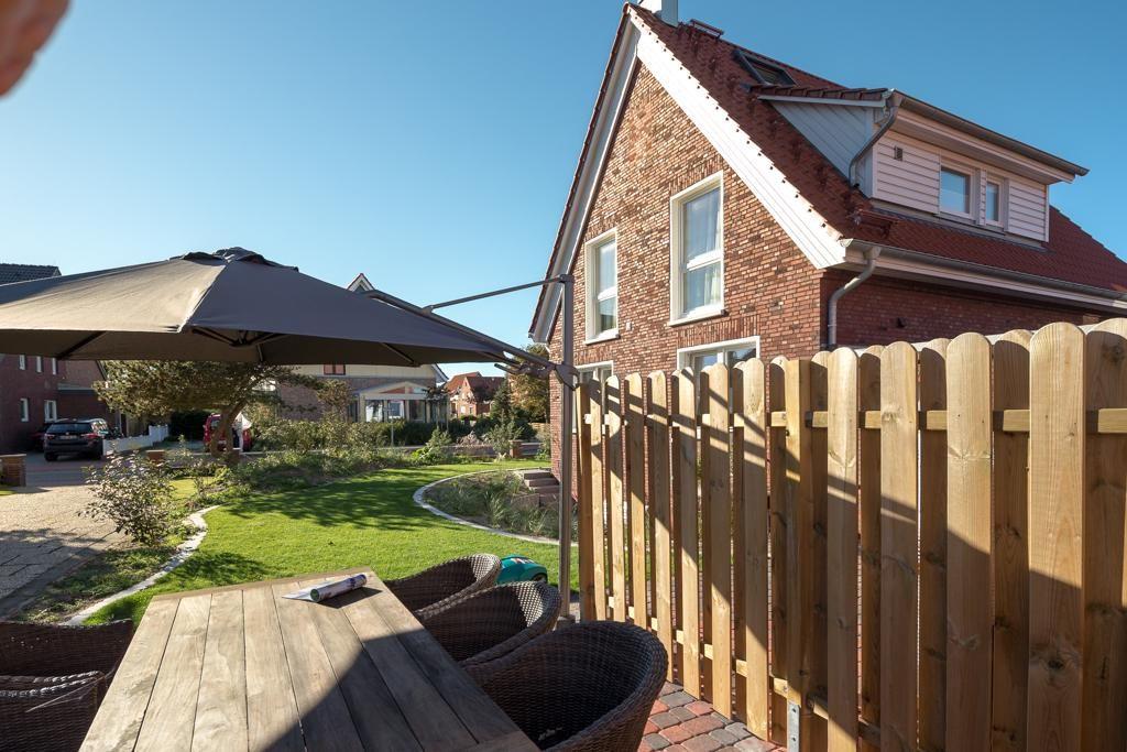 Der Garten am Haus steht den Bewohnern der beiden Wohnungen zur gemeinsamen Nutzung zur Verfügung. Für die Gäste der oberen Wohnung gibt es einen separaten Bereich im Garten, der mit Terrassenmöbeln ausgestattet ist. Ein Parkplatz für ein Auto befindet sich direkt am Haus. Des Weiteren kann die Garage am Haus genutzt werden, um Fahrräder oder Kinderwagen abzustellen. Der Zugangscode zur Garage befindet sich in der Wohnung. Hunde sind hier nicht erlaubt.