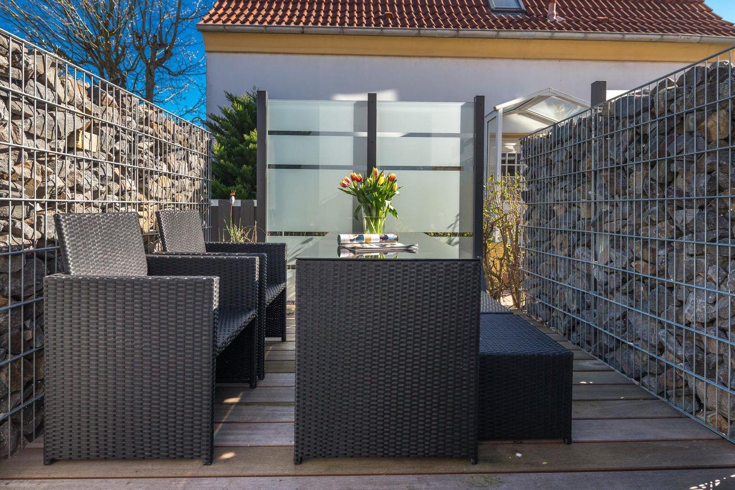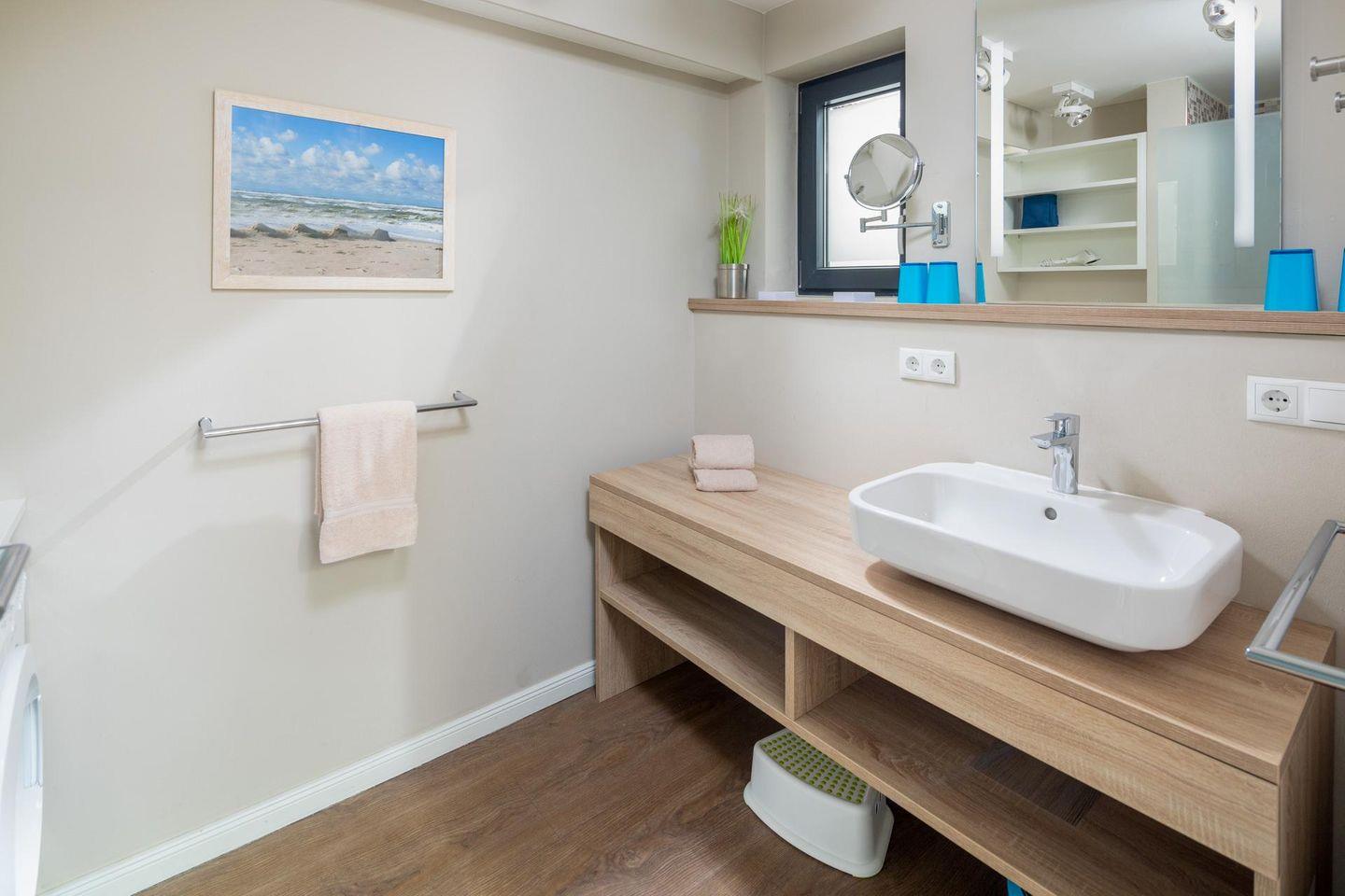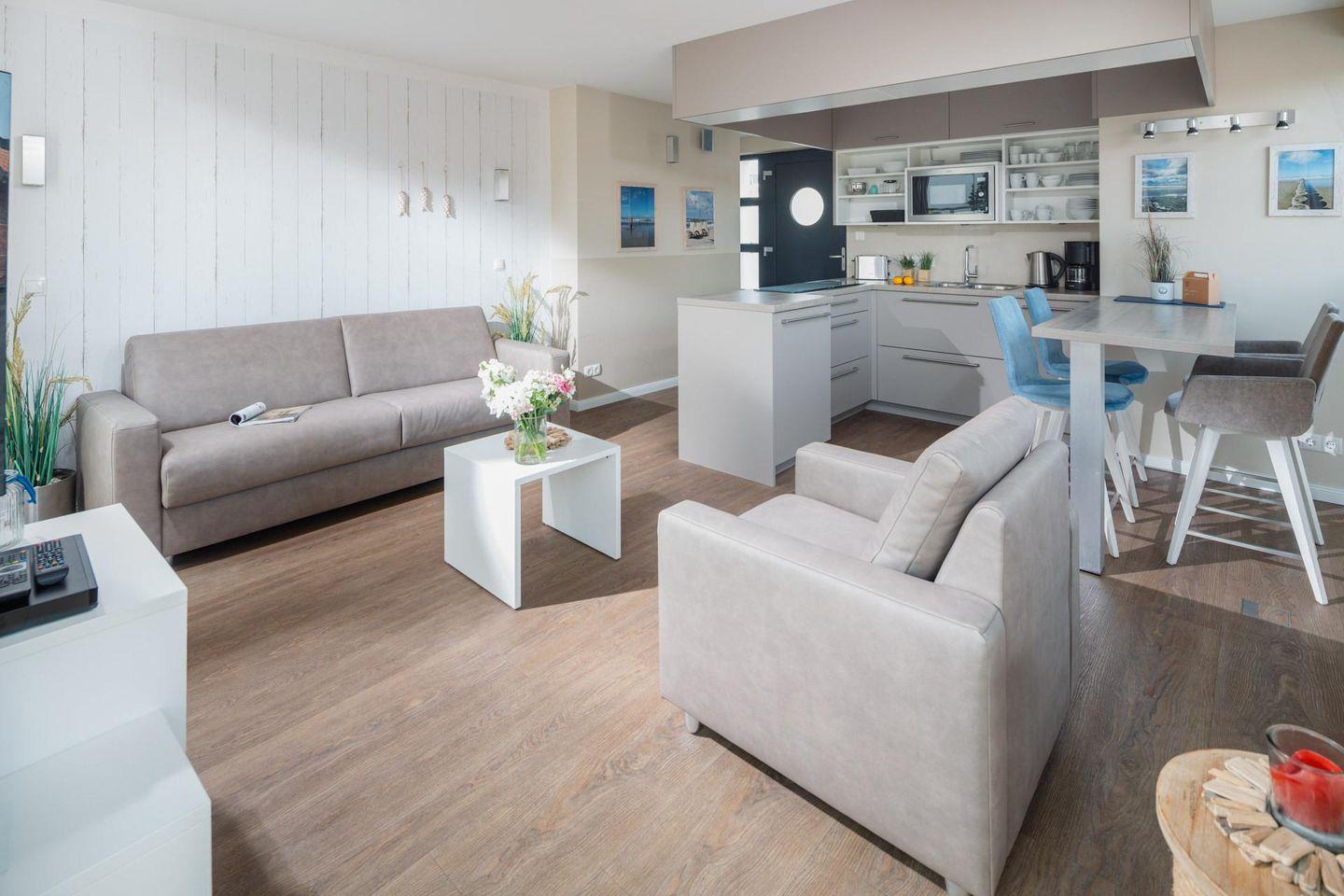 Ein Highlight der Ferienwohnung ist die knapp 20 Quadratmeter große Südterrasse. Die Wohnung wird seit August 2018 ohne Parkplatz angeboten. Hunde sind in dieser Wohnung erlaubt. Erlaubt ist maximal 1 Hund (Höhe maximal kniehoch). Die Hundewiese befindet sich in der Nähe des Fährhafens (kein Leinenzwang).