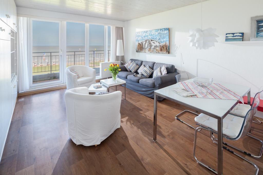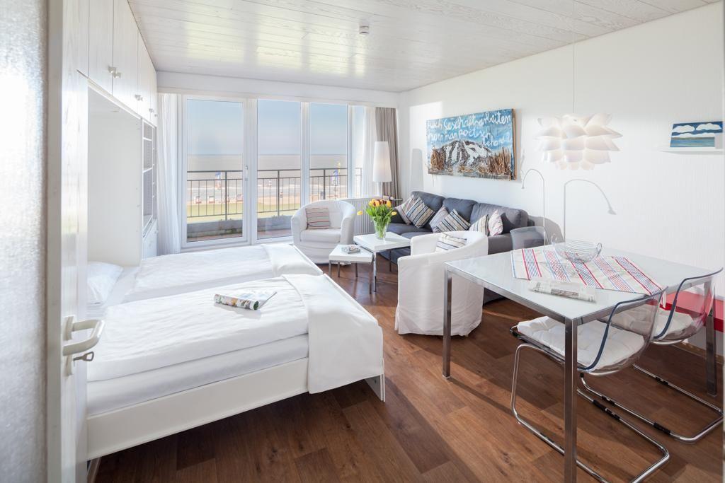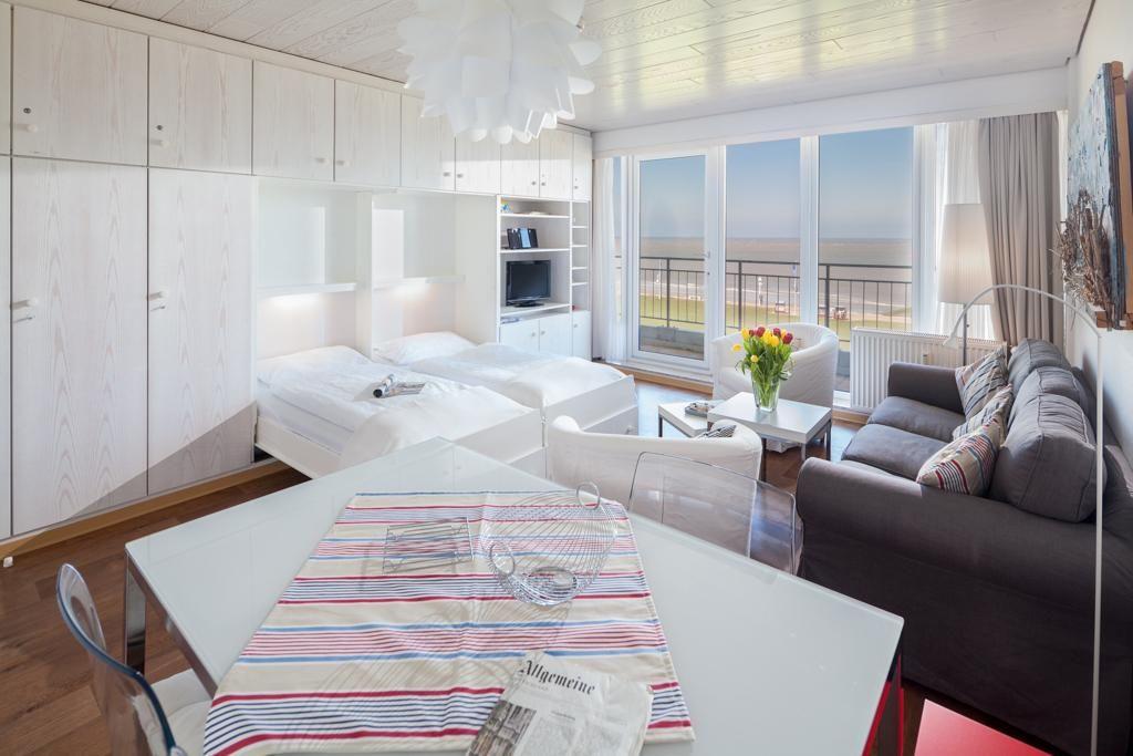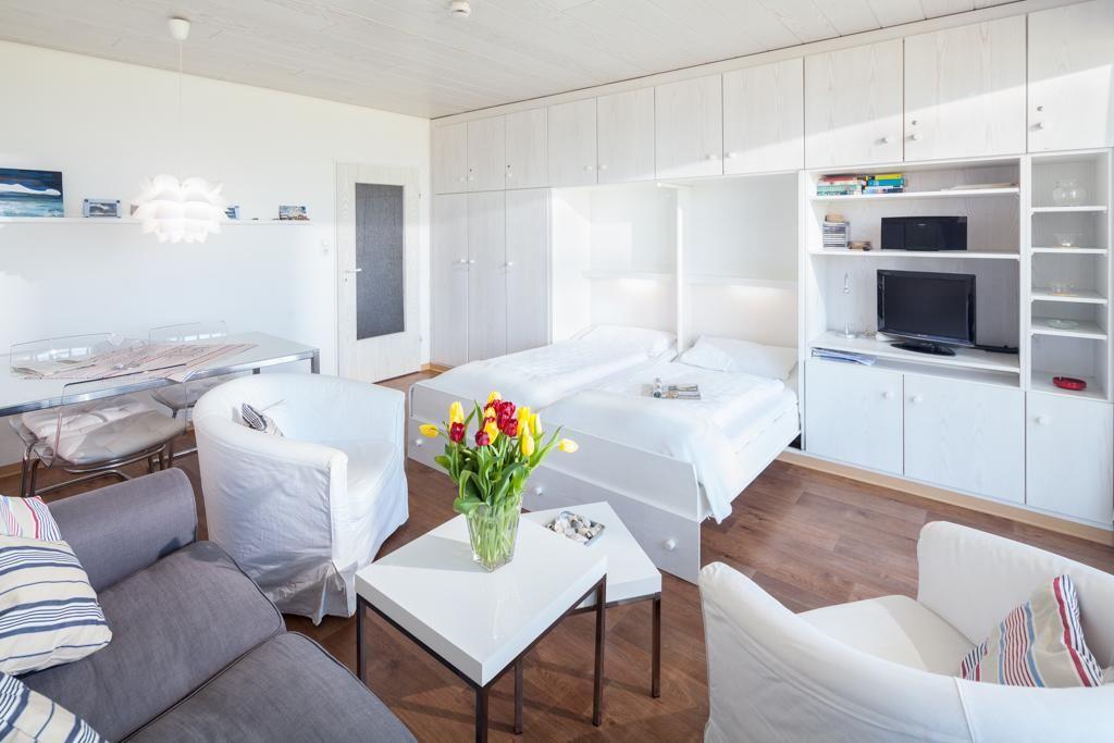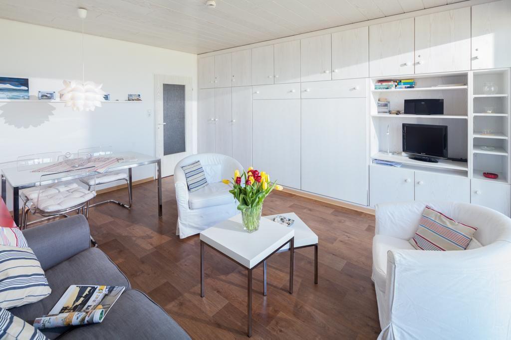 Die Wohnung wurde kürzlich umfassend modernisiert. Der Wohn-Schlafraum ist mit einem Schrankbett (zwei nebeneinander stehende Einzelbetten) ausgestattet. Das Schrankbett, das sich tagsüber unauffällig verstauen lässt, sorgt für genug Bewegungsfreiheit innerhalb der Wohnung. Weiter verfügt die Wohnung über eine neue Küchenzeile und ein neues Bad. Im Apartmenthaus "Kaiserhof" stehen den Bewohnern eine Waschmaschine und ein Wäschetrockner (beide mit Münzeinwurf) zur Verfügung. Zusätzlich steht eine Sauna bereit, die ebenfalls gegen Münzeinwurf nutzbar ist. Es ist zu beachten, dass das Schwimmbad aufgrund eines technischen Defektes geschlossen ist. Fahrräder können vor dem Haus (Nordseite) oder im Fahrradraum abgestellt werden. Hier darf auch der vierbeinige Freund mitkommen, denn die Ferienwohnung heißt auch Hunde herzlich willkommen. Erlaubt ist maximal 1 Hund (Höhe maximal kniehoch). Die Hundewiese befindet sich in der Nähe des Fährhafens (kein Leinenzwang).