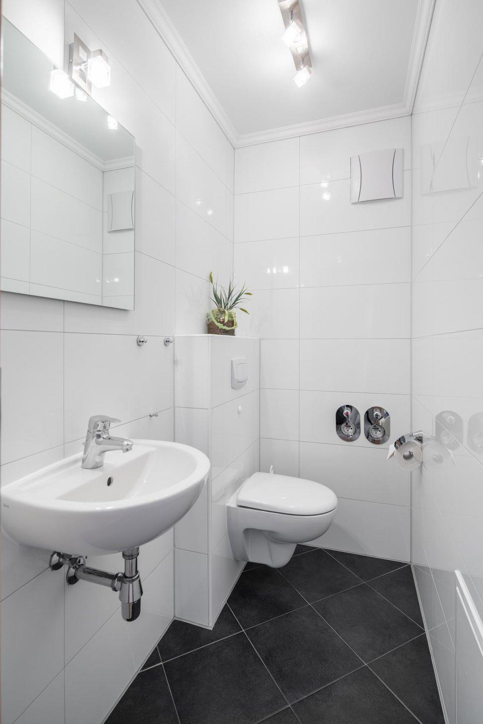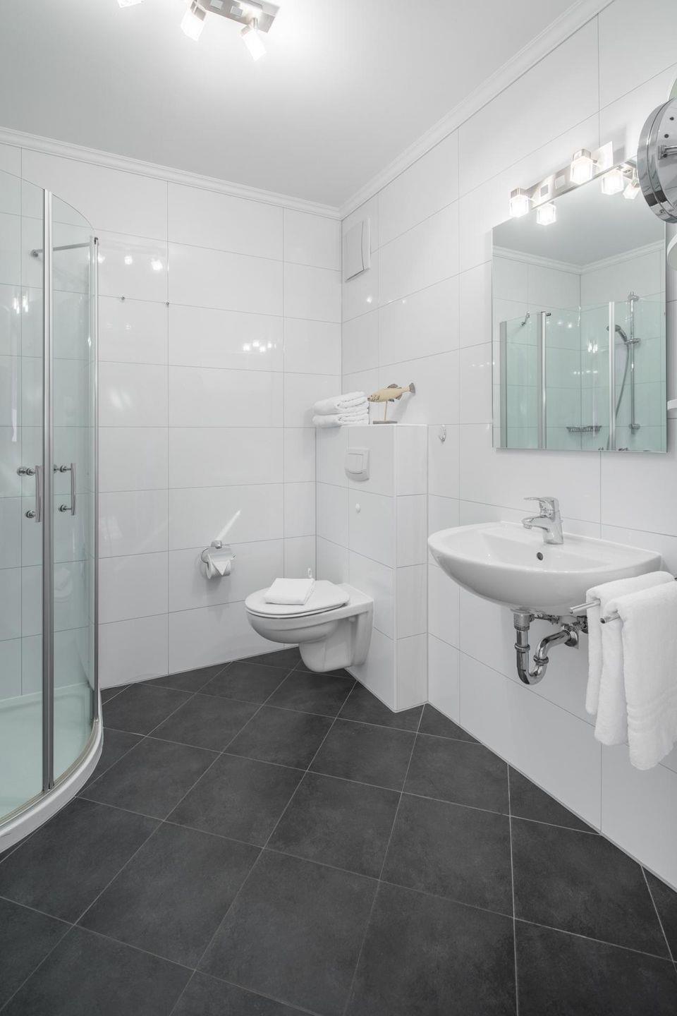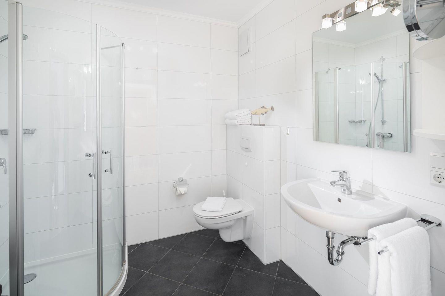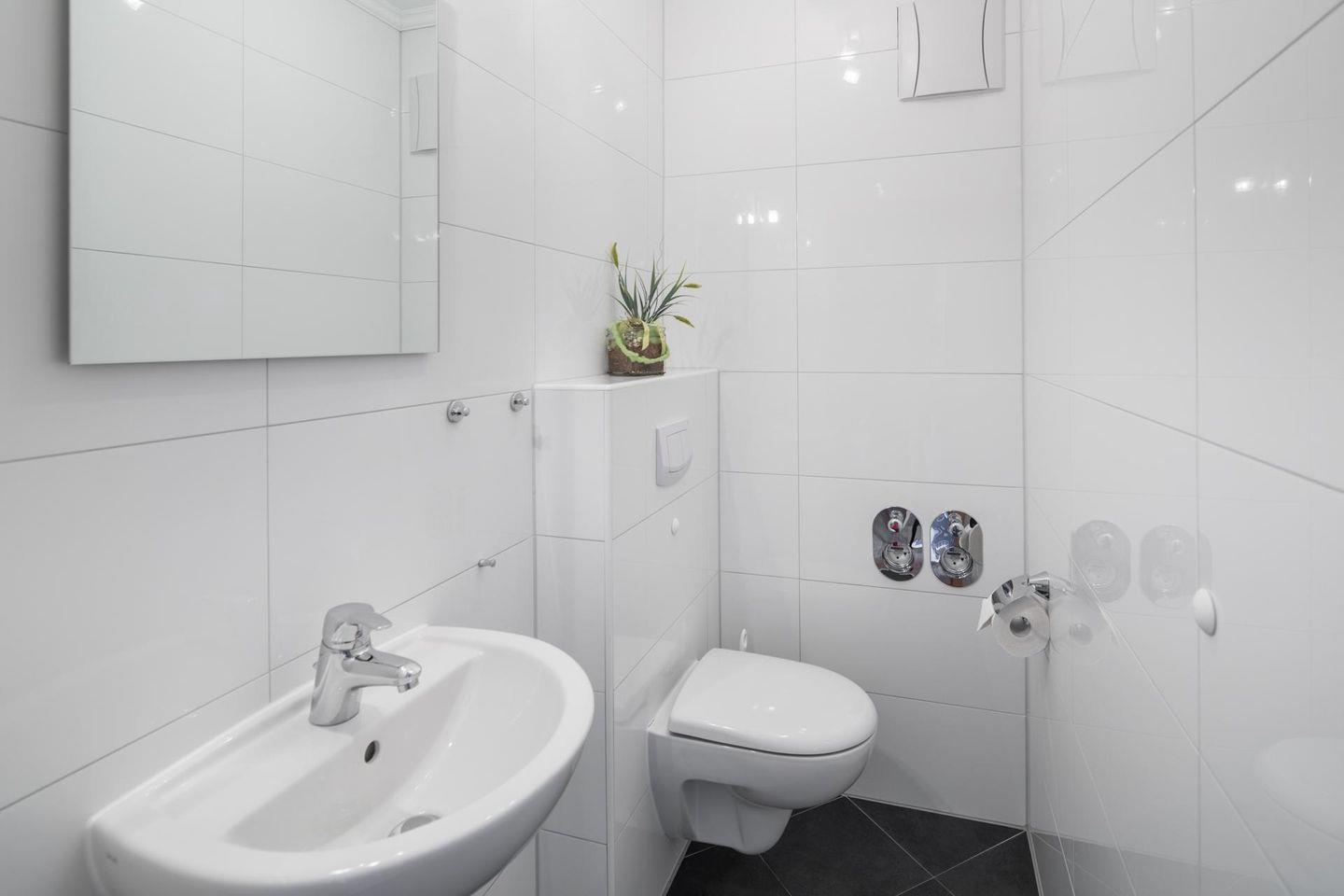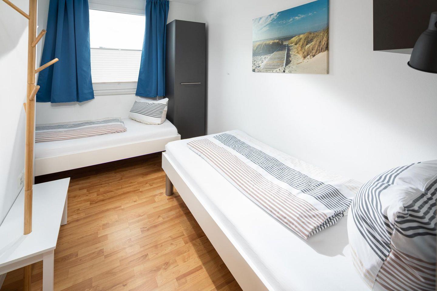 Die Wohnung besticht durch ihre gut ausgestattete Küchenzeile und ein komfortabel eingerichtetes Wohnzimmer mit zeitgemäßer Möblierung. Für die Unterhaltung stehen Kabelfernsehen sowie ein zweiter Fernseher im Schlafzimmer zur Verfügung. Insgesamt gibt es zwei Schlafzimmer, eines ist mit einem Doppelbett ausgestattet und das andere mit zwei Einzelbetten. Neben dem Badezimmer mit Dusche und WC steht auch ein Gäste-WC zur Verfügung. Ein besonderes Highlight ist der nach Süden ausgerichtete Balkon. Waschmaschine und Wäschetrockner befinden sich im Haus und stehen (für die gemeinschaftliche Nutzung gegen Münzeinwurf) zur Verfügung, was besonders für längere Aufenthalte von Vorteil ist. Hinter dem Haus steht den Bewohnern ein abschließbarer Fahrradraum zur Verfügung. Haustiere (Hunde) sind in dieser Ferienwohnung nicht erlaubt.