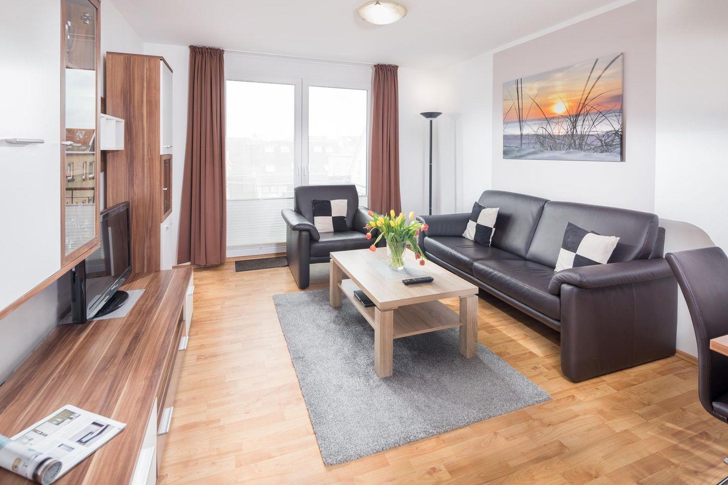 Die Ferienwohnung "Bernstein" befindet sich im zweiten Stock eines neu erbauten Ferienhauses in der Winterstraße. Ein Aufzug ist im Haus vorhanden. Die Wohnung bietet auf ca. 62 Quadratmetern Platz für bis zu vier Personen. Der Strand ist nur etwa 350 Meter entfernt und Restaurants sowie Geschäfte sind zu Fuß erreichbar.