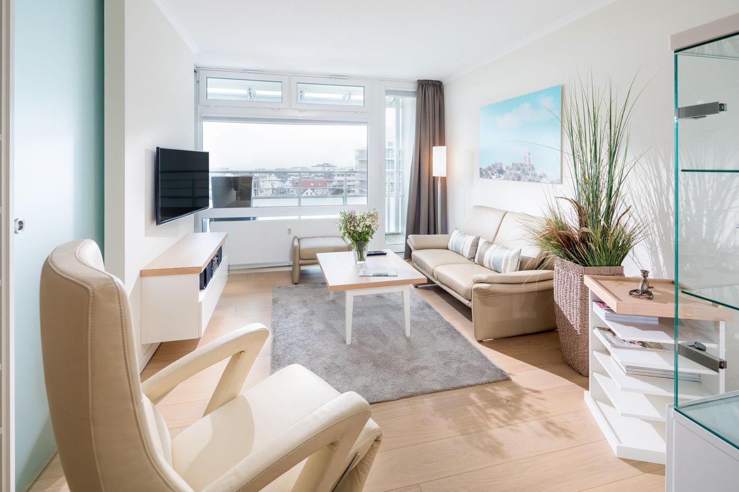 Die Ferienwohnung "Nordseeblick 132" befindet sich im sechsten Stock des Hauses "Nordseeblick". Das Haus liegt in der Kaiserstraße und ist mit einem Fahrstuhl ausgestattet. Die Wohnung bietet Platz für bis zu 3 Personen. Der Strand ist nur ca. 85m entfernt. Auch der Inselkern mit seinen zahlreichen Restaurants, Cafés oder anderen Einkaufsmöglichkeiten ist in wenigen Gehminuten erreichbar.