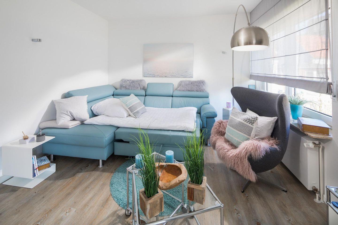 Der Balkon ist ca. 5,5 qm groß, liegt abgewandt von der Straße und ist nach Südosten ausgerichtet (Blick in den Garten). Die Wohnung "Ankerplatz" wurde bewusst für erwachsene Gäste gestaltet, Buchungen mit Kleinkindern können nicht berücksichtigt werden. Diese Wohnung ist, wie alle Wohnungen, eine "Nicht-Raucher-Wohnung. Hunde sind in dieser Wohnung nicht gestattet.