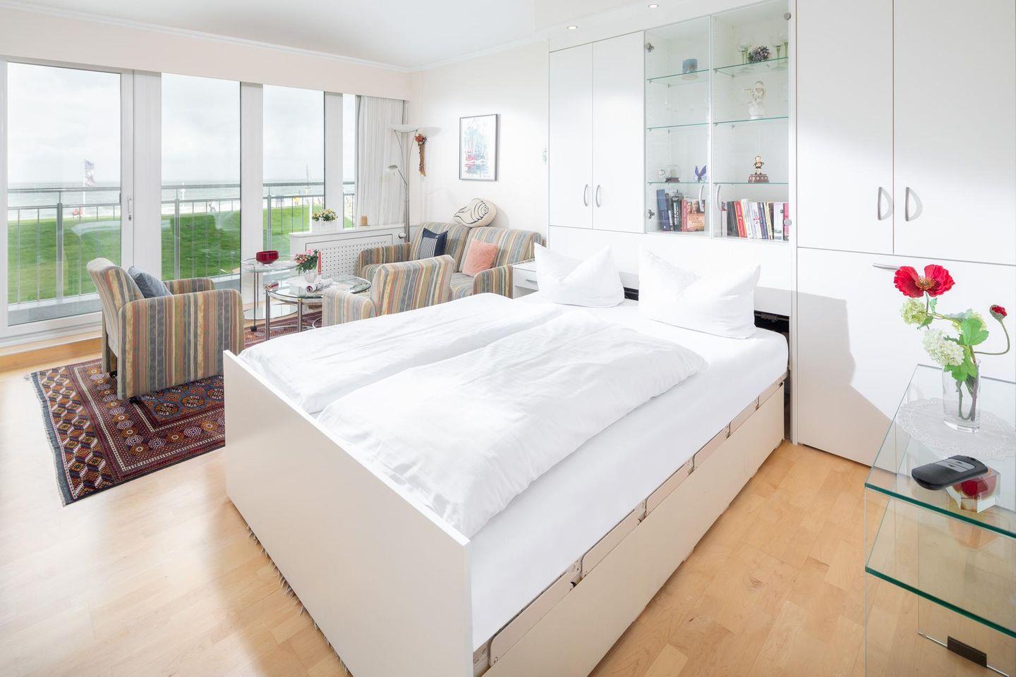 Die Ferienwohnung "Kaiserhof 05" ist ein 1-Raum-Apartment, das sich im ersten Stock des Apartmenthauses "Kaiserhof" befindet. Die Wohnung bietet einen direkten Blick auf das Meer (Balkon). Die Wohnung bietet Platz für bis zu 2 Personen.
