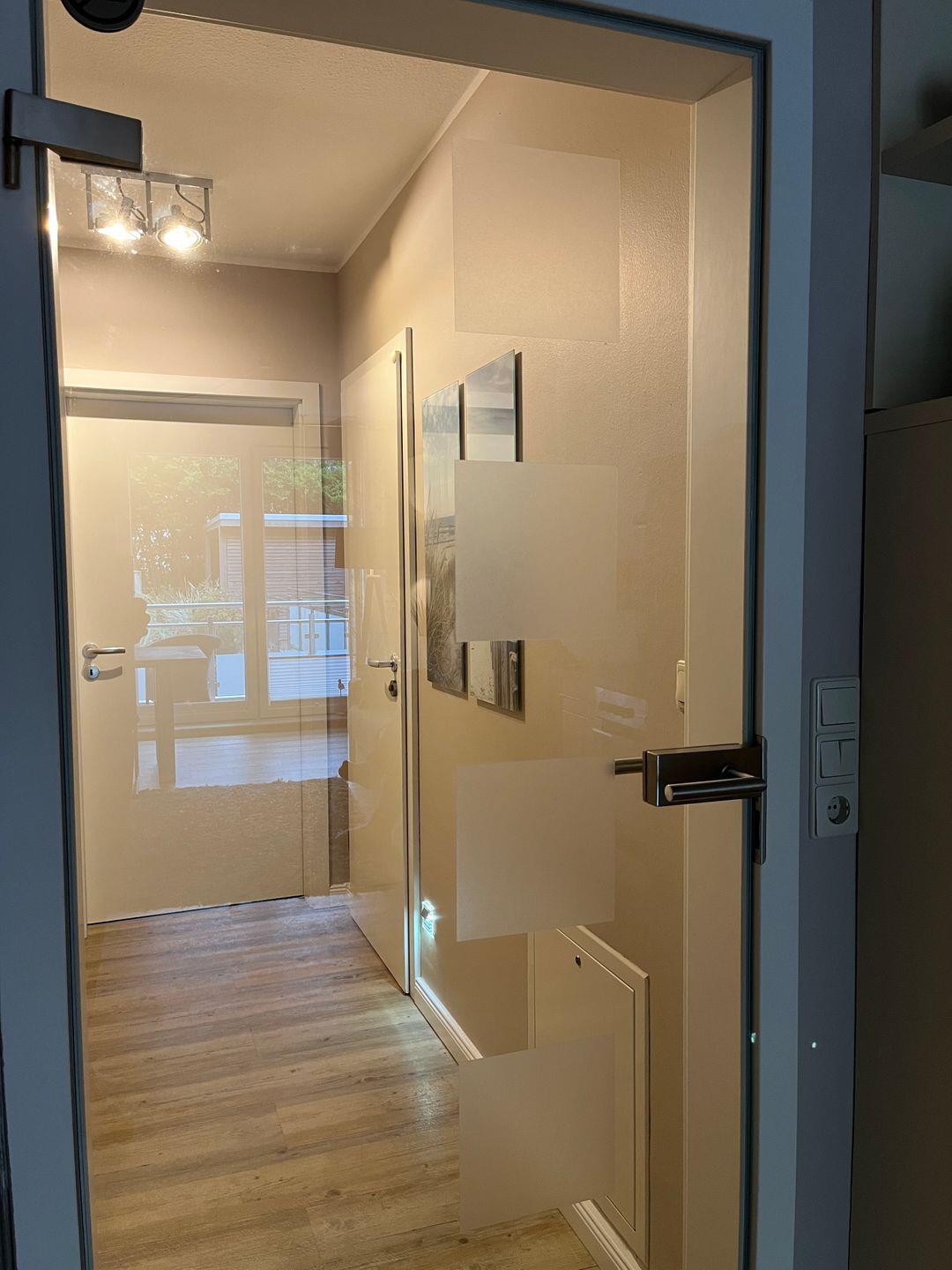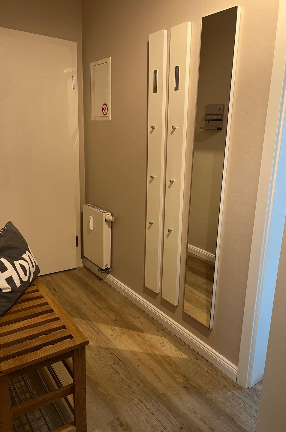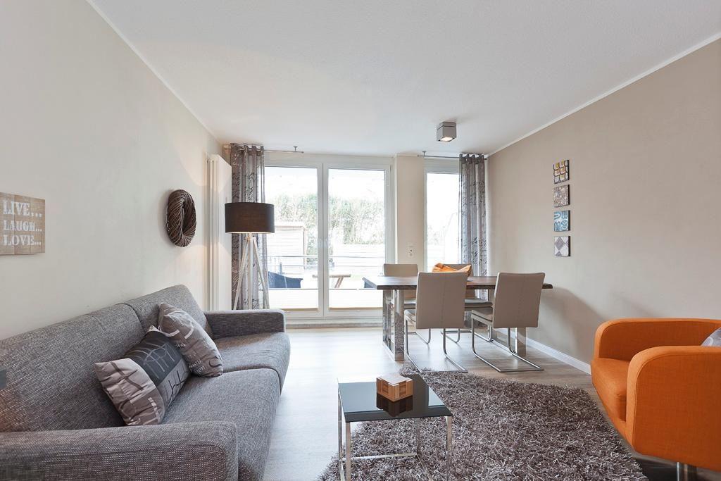 Die Wohnung ist modern ausgestattet. Das Schlafzimmer bietet mit einem Doppelbett Platz für bis zu zwei Personen. Zusätzlich können bis zu zwei weitere Gäste auf der Schlafcouch im Wohnzimmer übernachten. Der Wohnbereich verfügt über einen Smart-TV und die Kleiderschränke sind mit einer Innenbeleuchtung ausgestattet. Ein Highlight der Wohnung ist der ca. 7 qm große Balkon. Er liegt straßenabgewandt nach Süden. Zusätzlich steht eine Sauna bereit, die gegen Münzeinwurf (gemeinschaftlich) nutzbar ist. Ebenso erfordern die gemeinschaftlich nutzbare Waschmaschine und der Wäschetrockner den Einwurf von Münzen. Haustiere sind in dieser Ferienwohnung nicht erlaubt.