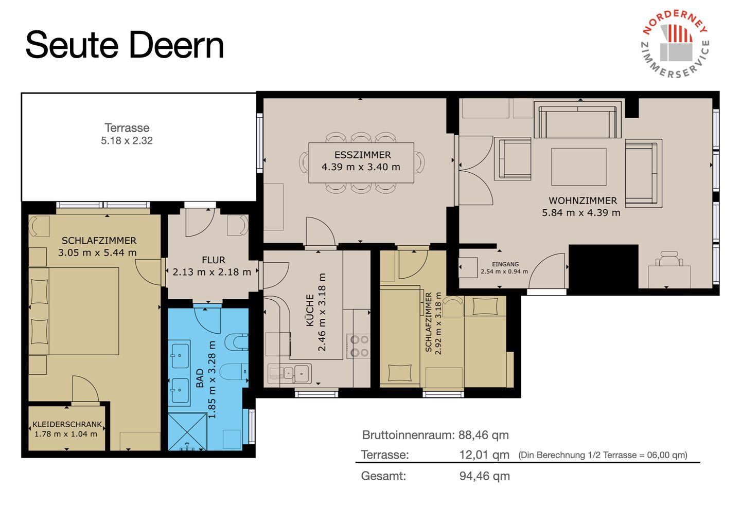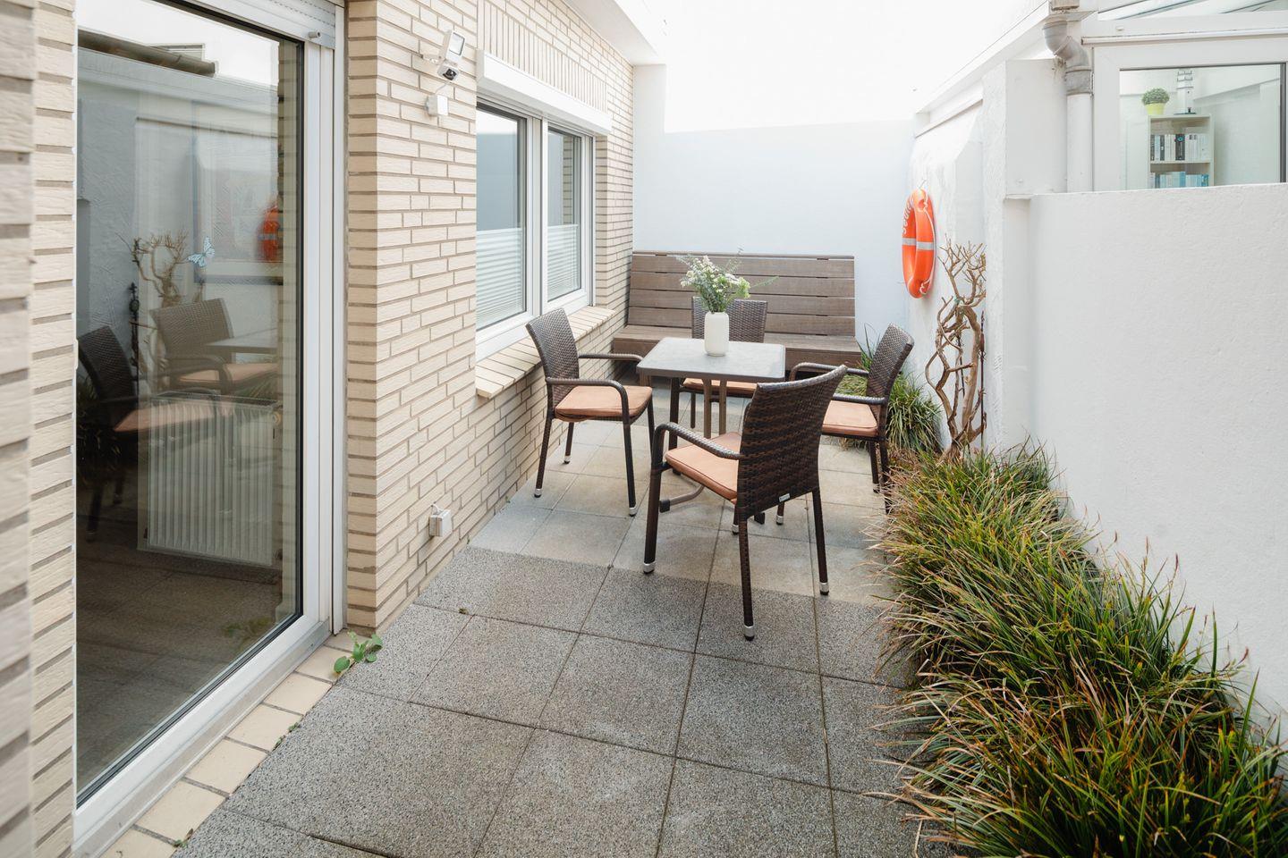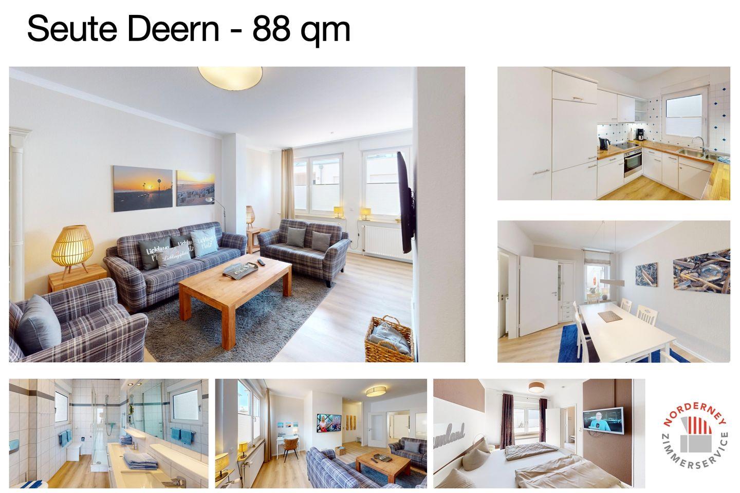 Die Ferienwohnung "Seute Deern" im Haus liegt zentral und trotzdem ruhiger in der Frisiastraße. Die Wohnung befindet sich im Erdgeschoss und bietet mit ihren ca. 90qm Platz für bis zu fünf Personen. In nur wenigen Schritten sind einige Restaurants, Cafés und andere Einkaufsmöglichkeiten erreichbar. Der Strand ist ebenfalls nur wenige Gehminuten entfernt.