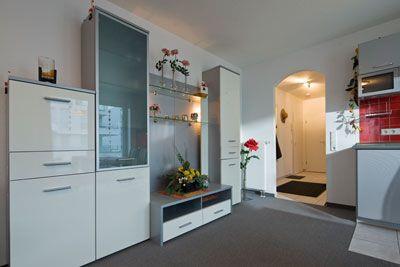 Das Appartement in der 1. Etage verfügt über ein separates Schlafzimmer mit Doppelbett und Seeblick aus dem Erker, Wohn-Schlafraum (Schlafsofa) mit Küchenzeile (4-Plattenherd, Spülmaschine, Mikrowelle), Diele, Dusche/WC und Kabel-TV (kein Telefon). Der die Wohnung umrandende Balkon hat Seeblick.