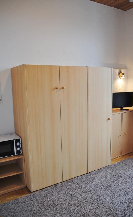 Das Single-Appartement in der 1. Etage verfügt über einen Wohn-Schlafraum mit Schrankbett, Pantry-Küche, Dusche/WC und Kabel-TV (ohne Telefon).