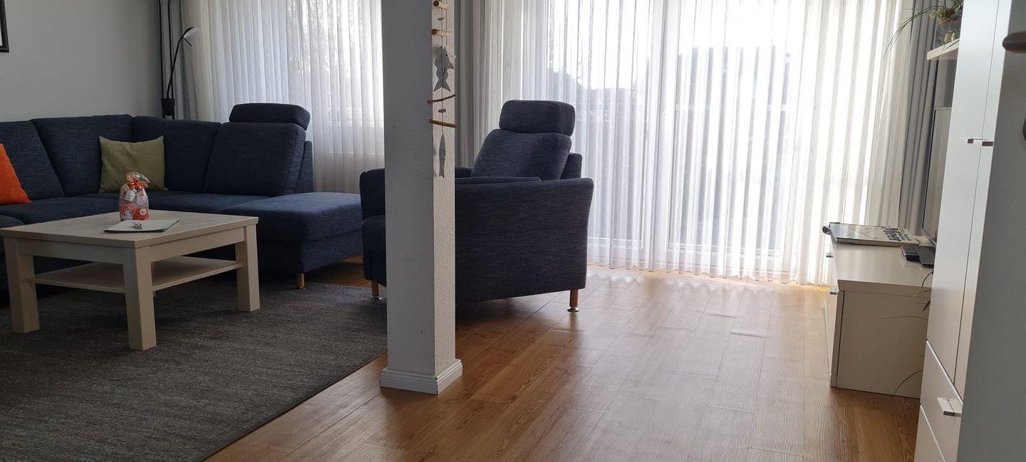 Das Appartement im 2. OG verfügt über ein separates Schlafzimmer mit Doppelbett, ein separates Schlafzimmer mit zwei Einzelbetten (ein Gästebett kann auf Wunsch bereitgestellt werden), Küchenzeile (4-Platten-Herd, Backofen, Mikrowelle, Spülmaschine), Diele, Badezimmer mit Dusche/WC und zwei Waschbecken, Wohnraum mit Kabel-TV und Essecke. NICHTRAUCHERWOHNUNG!