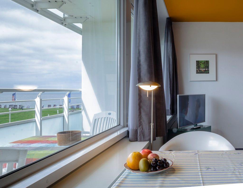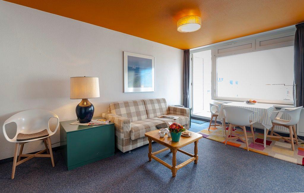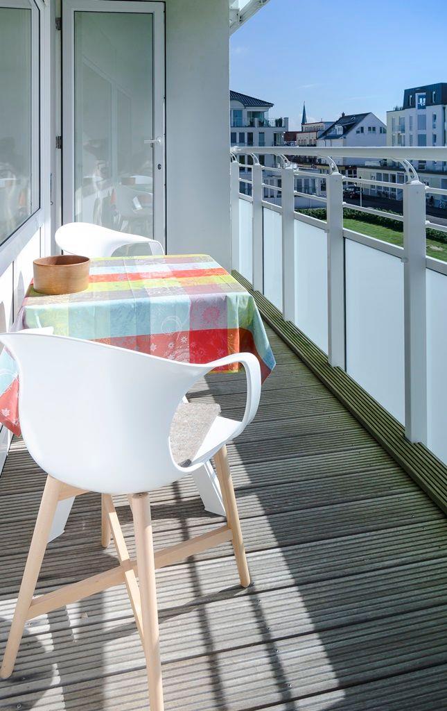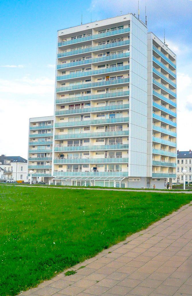 Das Appartement 11 in der 2. Etage verfügt über ein separates Schlafzimmer mit Boxspringbett, Wohnraum mit Küchennische (4-Plattenherd, Spülmaschine, Mikrowelle), Diele, Dusche/WC und TV. Der Balkon hat seitlichen Meerblick. Die Wohnung befindet sich im Haus Kaiserstraße 17. WLAN.