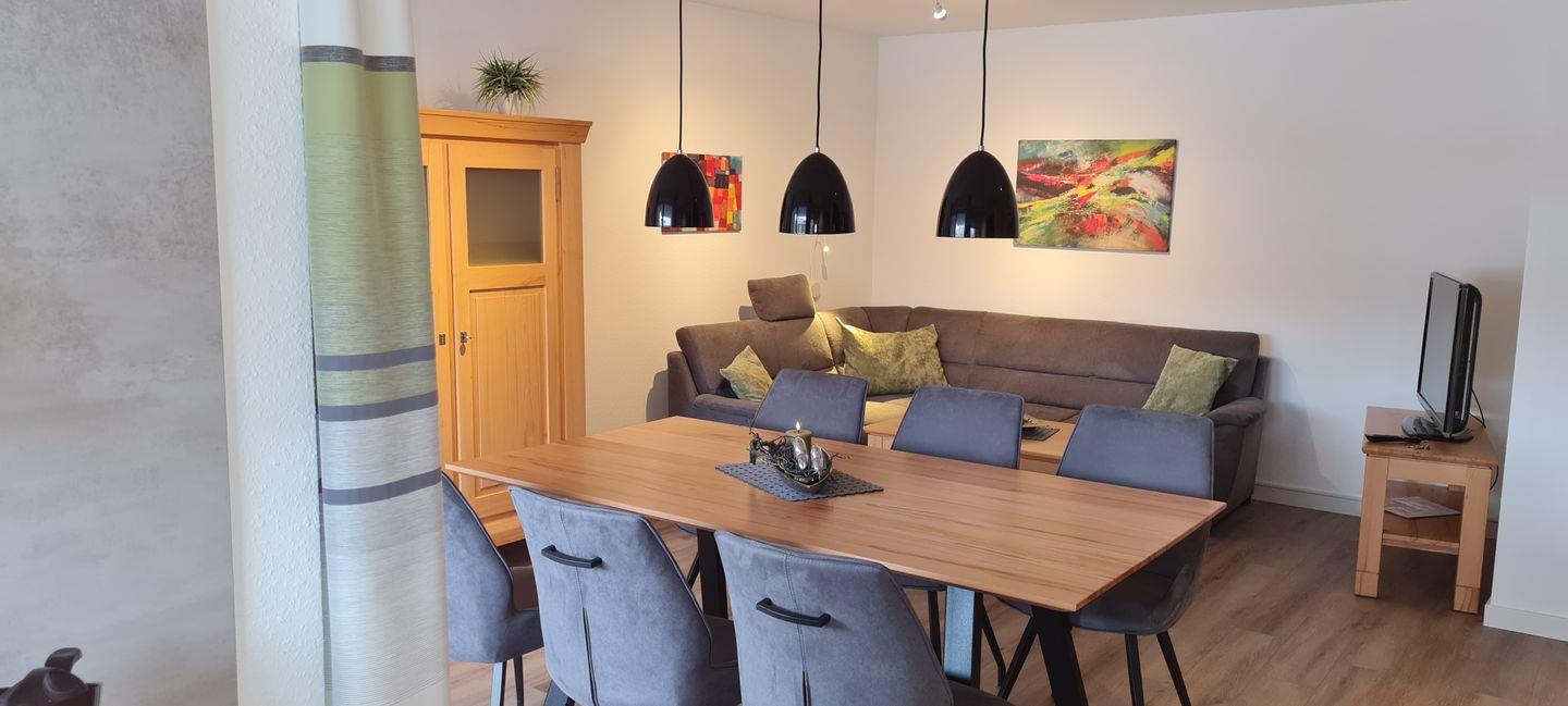 Das Wohn-Esszimmer ist groß und verfügt über einen voll ausgestatteten Küchenblock mit einem 4-Plattenherd, Backofen, Mikrowelle, Geschirrspülmaschine sowie einer Kühl-Gefrierkombination. In der Wohnung steht Ihnen Kabel-TV und kostenloses WLAN zur Verfügung.
