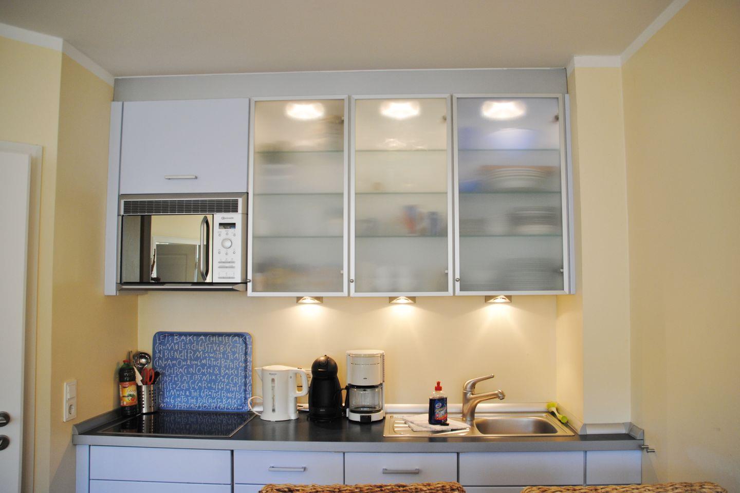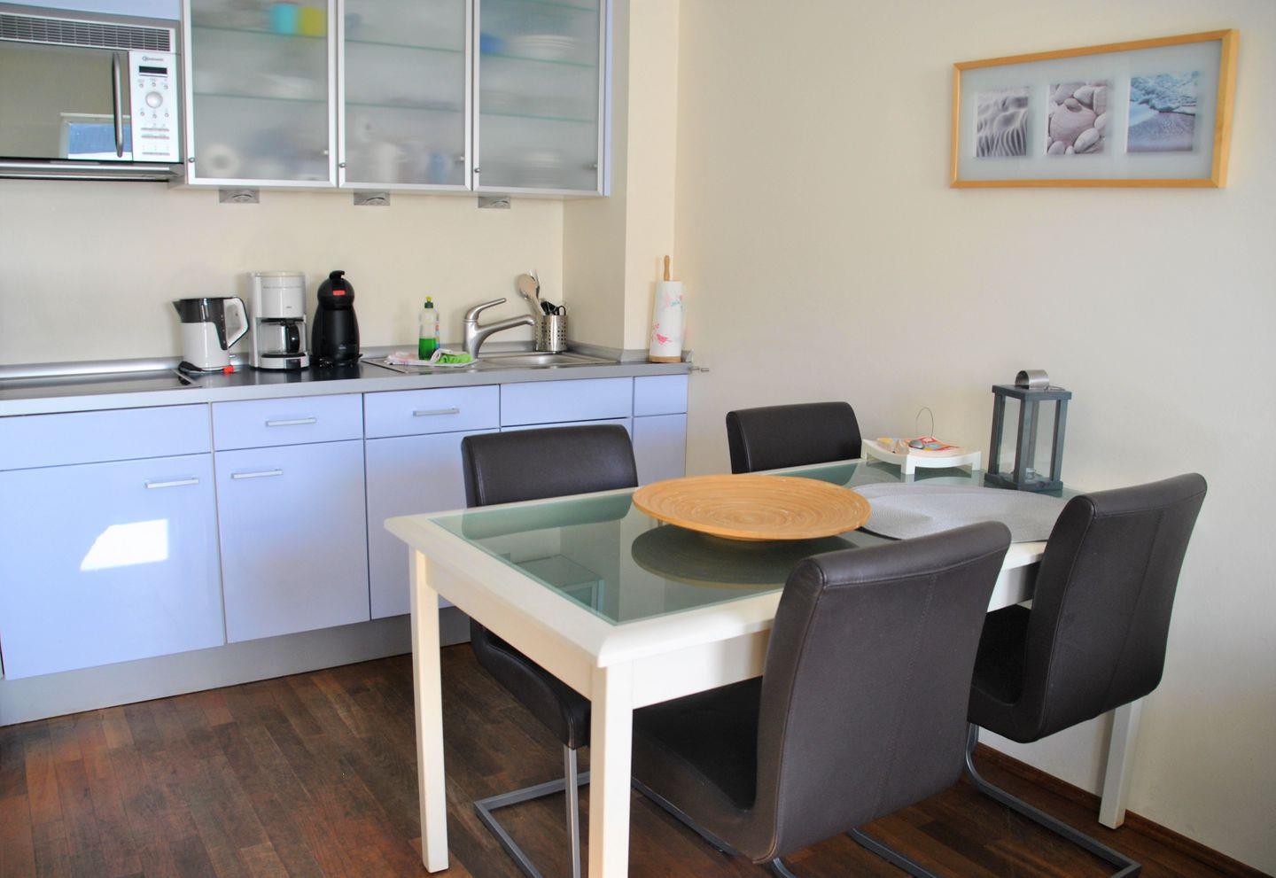 Das gemütliche 2-Raum-Appartement im 2. OG verfügt über ein separates Schlafzimmer mit Doppelbett und Kabel-TV, Wohn-Schlafraum (Schlafsofa) mit Küchenzeile (4-Zonen-Kochfeld), Süd-Balkon, Diele, Badezimmer mit Dusche/WC, Kabel-TV, CD-Player. HINWEIS: Der Eingang des Hauses ist in der Bäckerstraße.