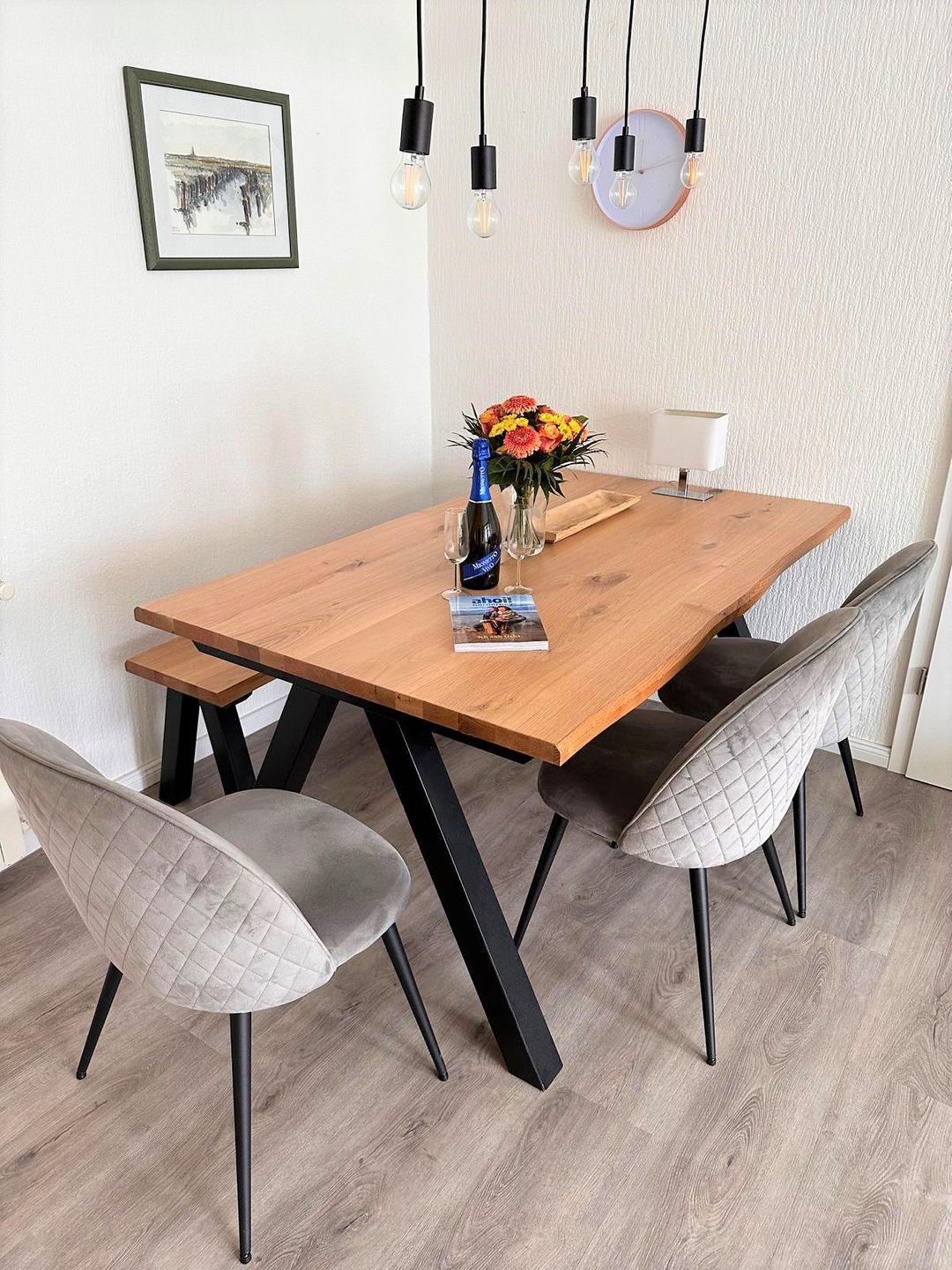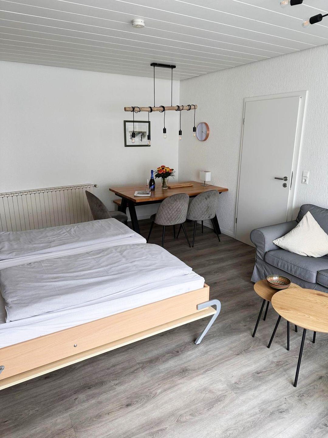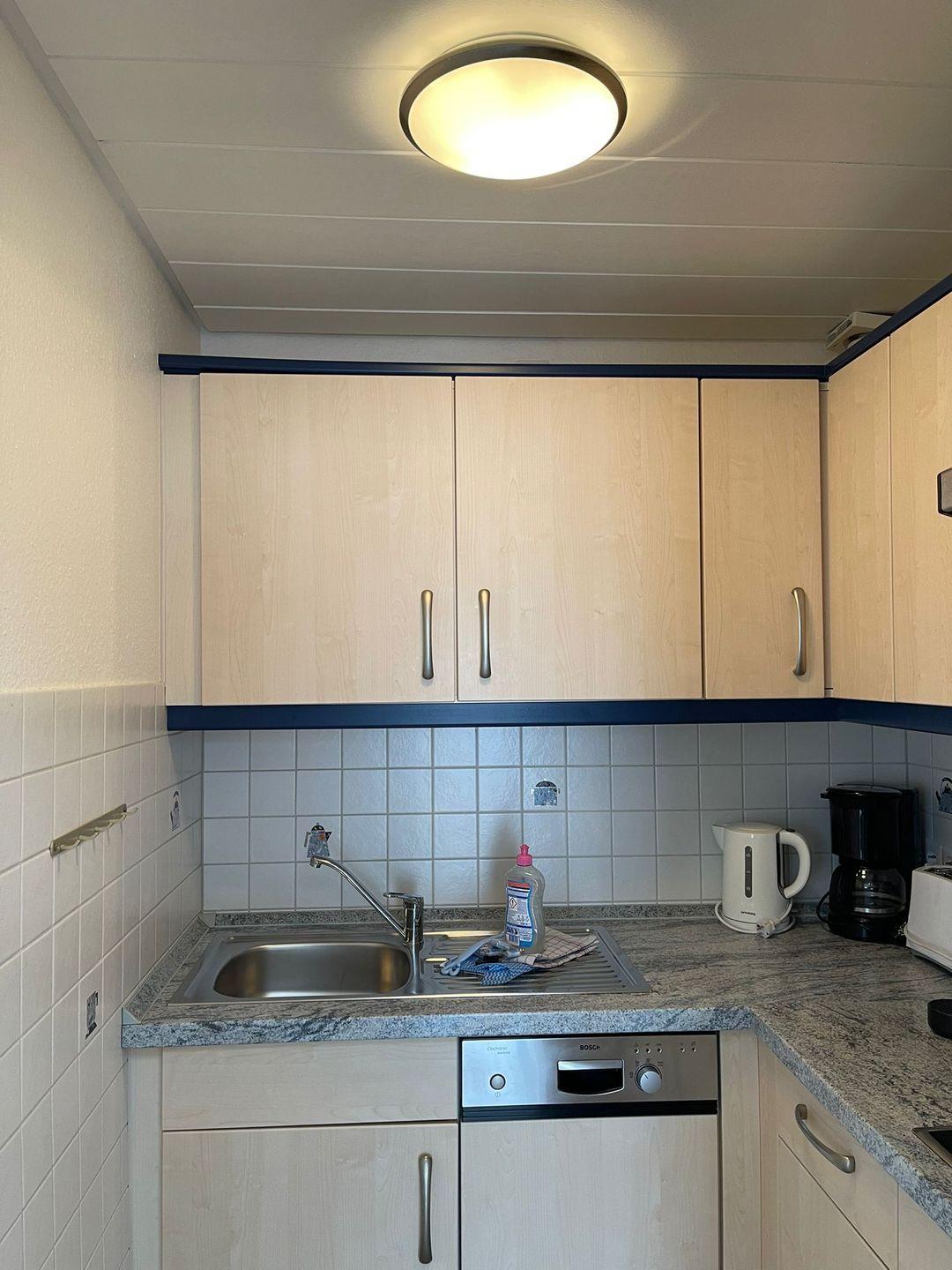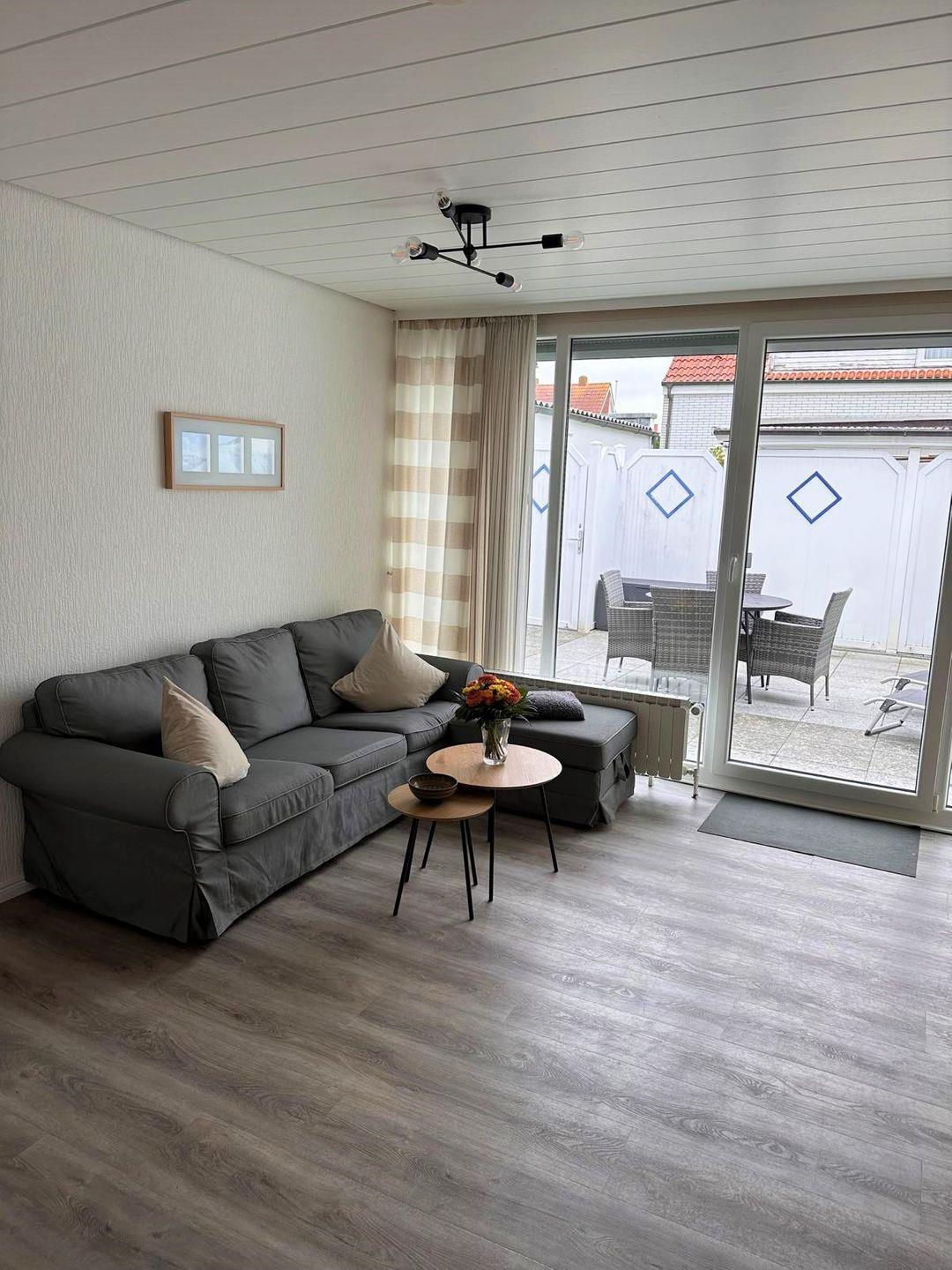 Die Wohnung verfügt über ein separates Schlafzimmer mit Doppelbett, Wohn-/Schlafraum (zwei Schrankbetten) mit Essbereich, Küche (Standard-Elektrogeräte; Spülmaschine) und neu renoviertes Badezimmer mit Dusche/ WC. Vor dem Bungalow befindet sich die großzügige Terrasse. WLAN vorhanden. NICHTRAUCHERWOHNUNG!