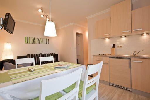 Das 2-Raum-Appartement im Erdgeschoss für max. 3 Personen verfügt über ein separates Schlafzimmer mit Doppelbett , Wohn-/Schlafraum (Schlafsofa) mit TV (DVD-Player),Küchezeile (2-Plattenherd,Kühlschrank und 2*Gefrierfach), Essecke, Dusche/WC und eine Terrasse (Zugang vom Wohn- und Schlafzimmer). WLAN im Haus,