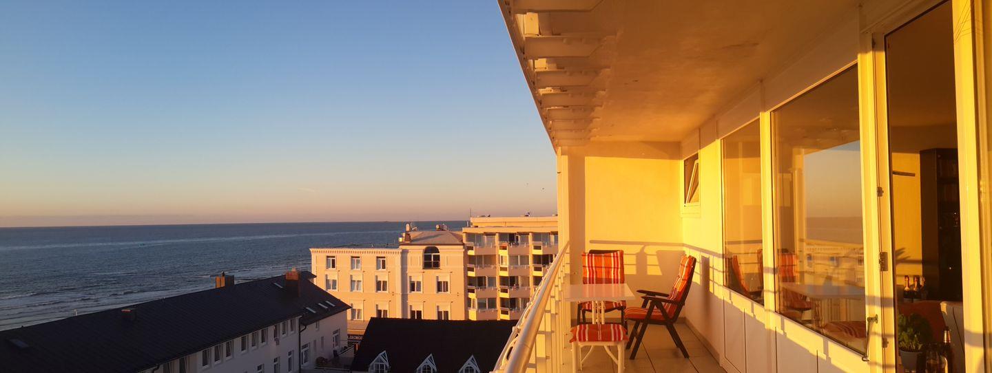 Das Appartement Nr. 135 in der sechsten Etage verfügt über einen direkten Meerblick und ist ausgestattet mit drei Schlafzimmern, eins mit einem Boxspringbett (ca. 1,80m breit) und zwei mit jeweils einem Einzelbett, Wohnraum (TV) mit Küchenzeile (durch Vorhang abtrennbar, Spülmaschine) und Essecke, Diele, Dusche/WC. Vom Wohnraum haben Sie Zugang zum Balkon mit frontalem Meerblick. High-Speed Internet WLAN (Glasfasernetz). Die Wohnung befindet sich im Haus Kaiserstraße 18. NICHTRAUCHERWOHNUNG! Keine Parkmöglichkeiten am Haus!