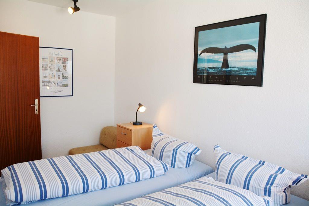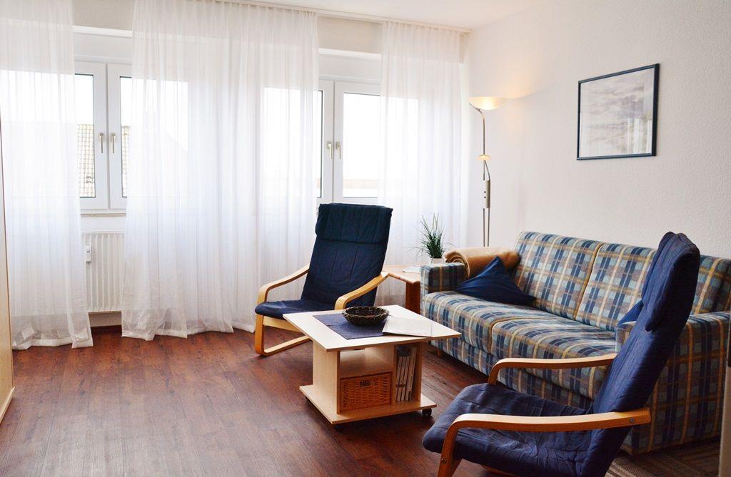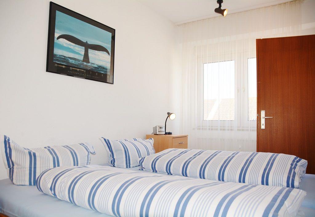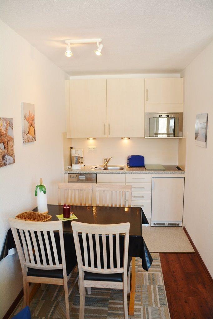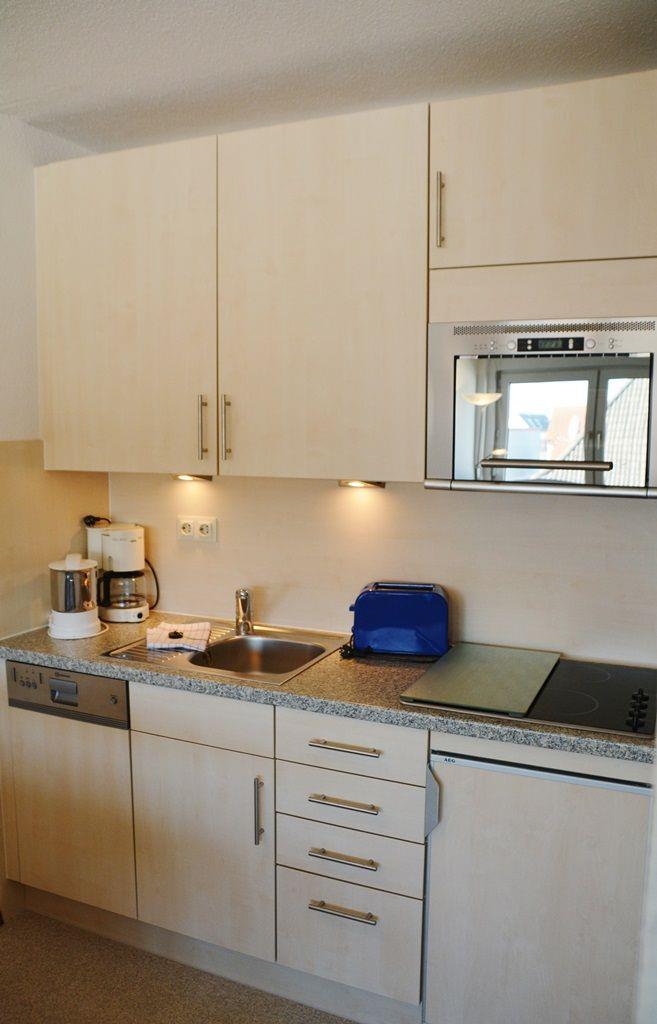 Das Appartement in der 3. Etage (Fahrstuhl im Haus) verfügt über ein separates Schlafzimmer mit Doppelbett, Wohn-Schlafraum (Schlafsofa) mit Küchenzeile (4-Platten-Herd, Spülmaschine), Diele, Dusche/WC und TV.