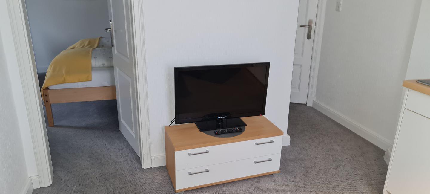 Das 2-Raum-Appartement in der 2. Etage verfügt über ein Wohnzimmer mit Küchenzeile und Essecke (TV, Spülmaschine, 4-Platten-Ceranfeld). Sowie ein Schlafzimmer mit Doppelbett und Dusche/WC sind vorhanden. Ein Parkplatz kann bei Verfügbarkeit für 2,50 € pro Tag hinzugemietet werden. WLAN vorhanden.