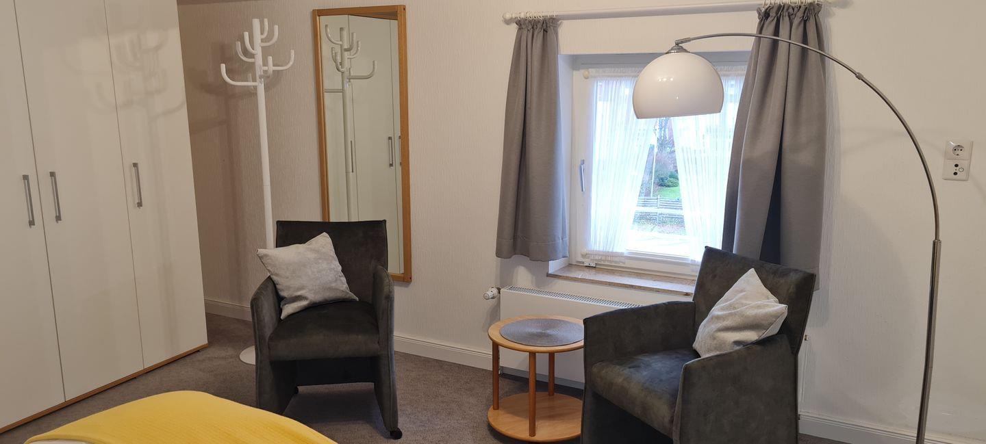 Das 2-Raum-Appartement in der 2. Etage verfügt über ein Wohnzimmer mit